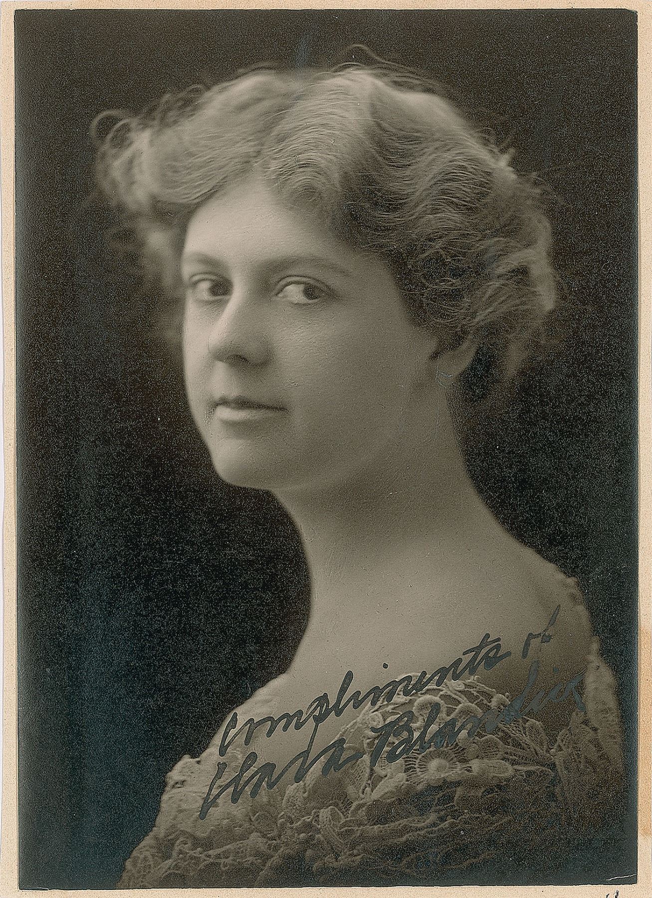 American actress (1880–1962) who is best known for her memorable role as Auntie Em in The Wizard of Oz. Scarce vintage 3.75 x 5.5 bust-length portrait of Blandick, signed in fountain pen, "Compliments of, Clara Blandick." Affixed to a slightly larger sheet. In very good to fine condition, with light wrinkling.
