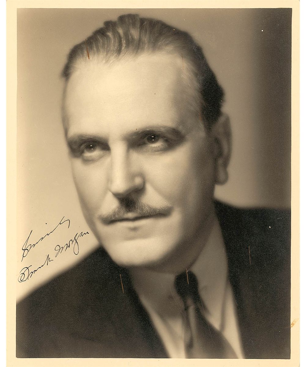 Character actor (1890-1949) best remembered as the title character, Emerald City’s doorman, coachman, Guardian of the Gate, and Professor Marvel in the film The Wizard of Oz. Vintage matte-finish 8 x 10 head-and-shoulders photo, signed in fountain pen. Some scattered thin light vertical stains and spots and a bit of light silvering to darker areas, otherwise fine condition.