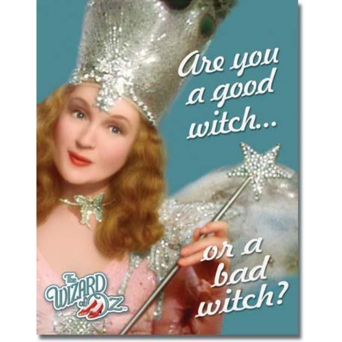 Wizard of Oz, Good or Bad Witch vintage style decorative metal sign 12 1/2" X 16" with pre-drilled holes for mounting.
