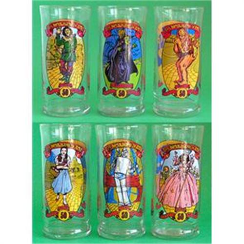 This complete set of six (6) tumblers was produced in 1989 to commemorate the 50th anniversary of the 1939 Wizard of Oz MGM Movie. Each tumbler has two bright and colorful paintings of a movie character and includes the following: - Dorothy - Scarecrow - Tin Man - Lion - Glenda - and of course - The Wicked Witch of the West. They each measure 6" tall, are marked CocaCola Collectors Series 1989 - and copyrighted by MGM and Turner Entertainment. They are all, including the paint, in excellent condition