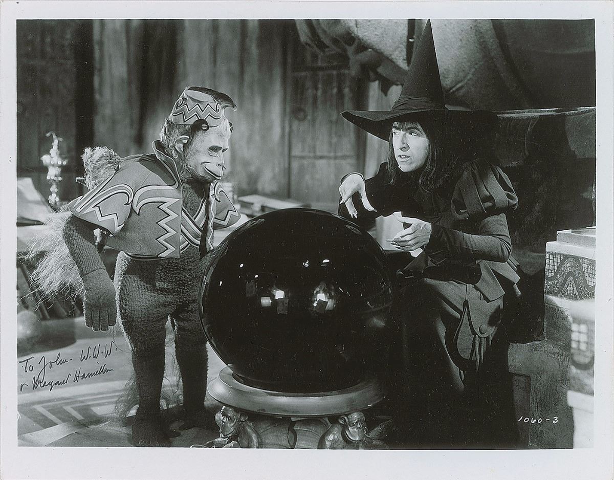 Glossy 10 x 8 photo of Hamilton in a scene from Wizard of Oz, signed and inscribed in black felt tip, “To John, W.W.W., Margaret Hamilton.” In fine condition.