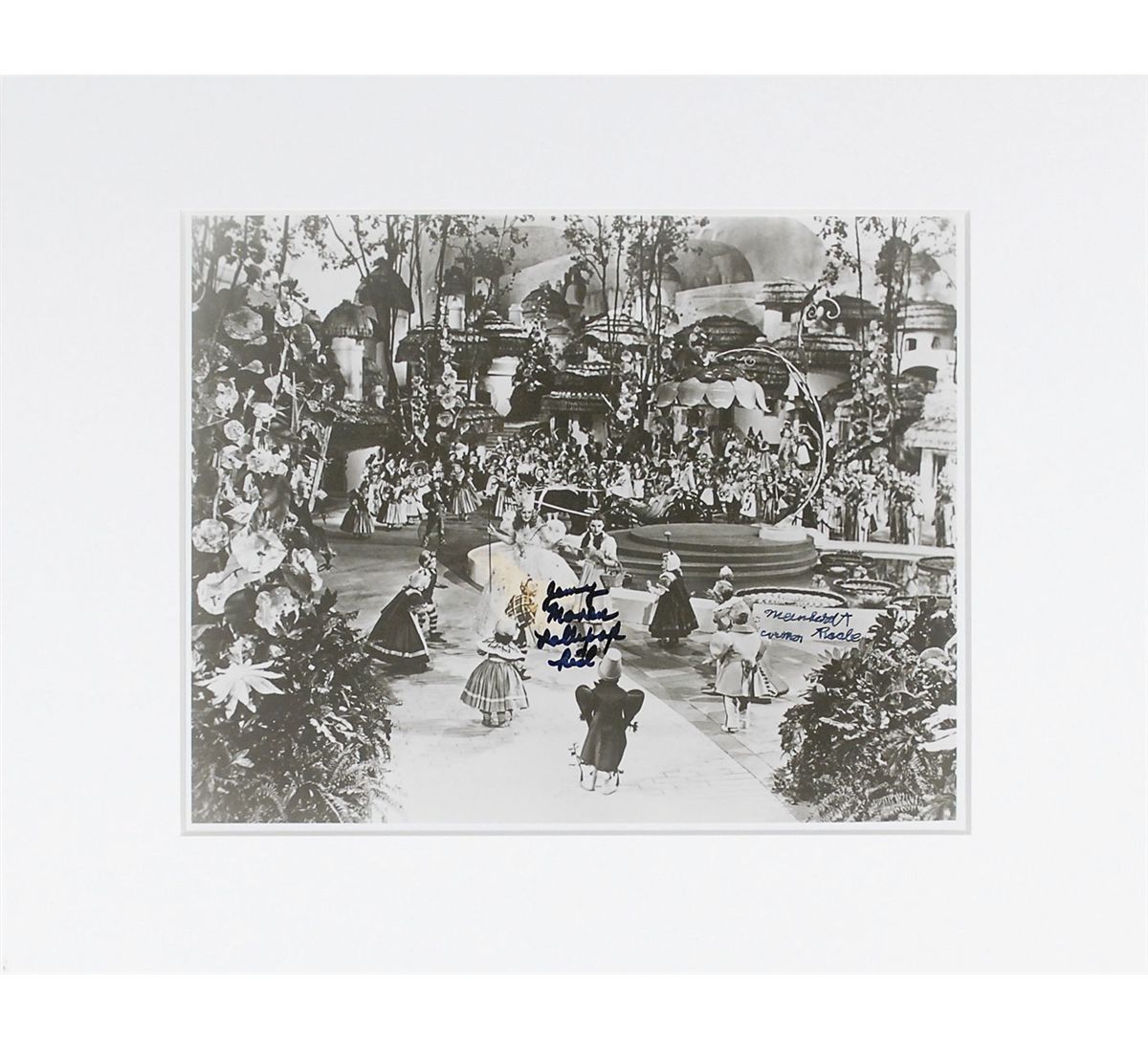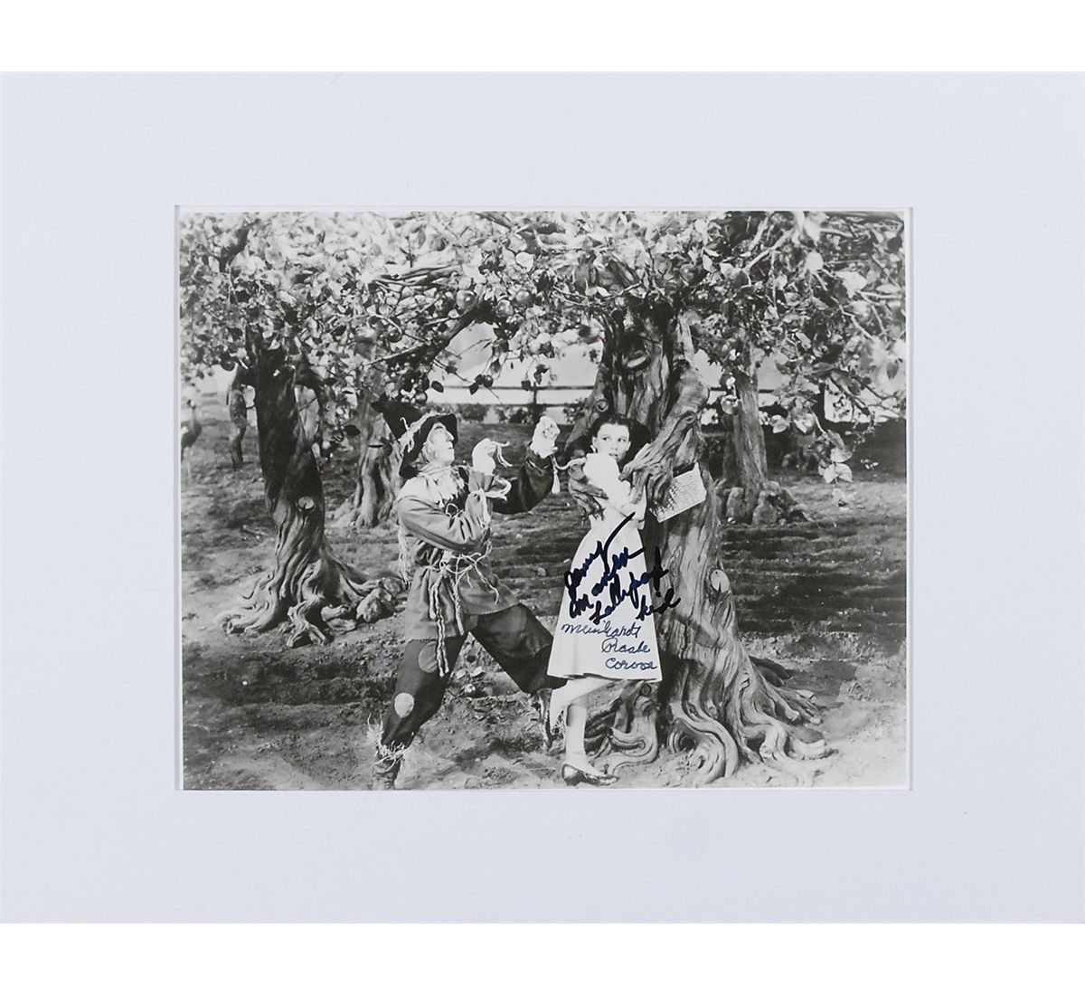 Two glossy 9.25 x 7.5 photos of scenes from Wizard of Oz, both signed in black felt tip by Meinhardt Raabe and Jerry Maren. Each is matted to an overall size of 14 x 11. In overall fine condition.