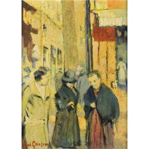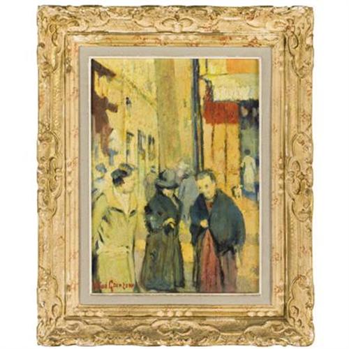<B>WLADYSLAW GRANZOW (Polish, b. 1872)</B></I><BR><I>Ladies in a Village Square</B></I><BR>Oil on panel<BR>16-1/2 x 11-1/2 inches (41.9 x 29.2 cm)<BR>Signed lower left: <I>Wlad. Granzow</B></I><BR> <B>Condition Report:</B> Surface grime, yellowed varnish.<BR><BR><b>Shipping:</b> Framed - without Glass, Medium (<a target="_blank" href="http://www.heritageauctions.com/common/shipping.php">view shipping information</a>)