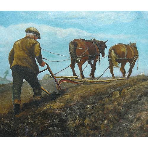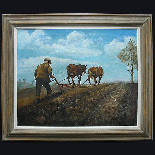 Wm A. Tulloch oil on canvas "The Plowman"; signed and dated '27 lower left; framed; 25" x 30 1/4", relined (no visible defects)