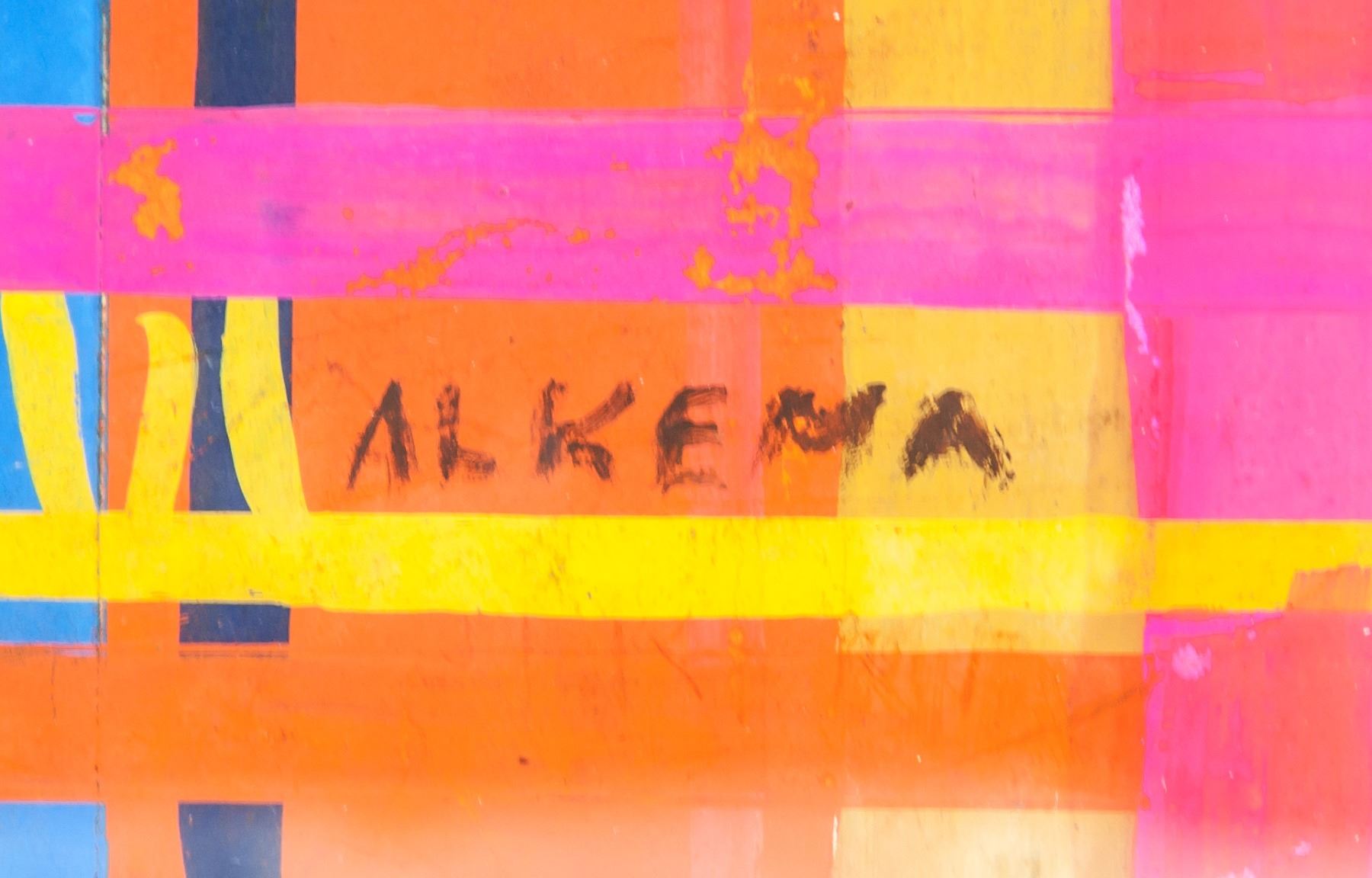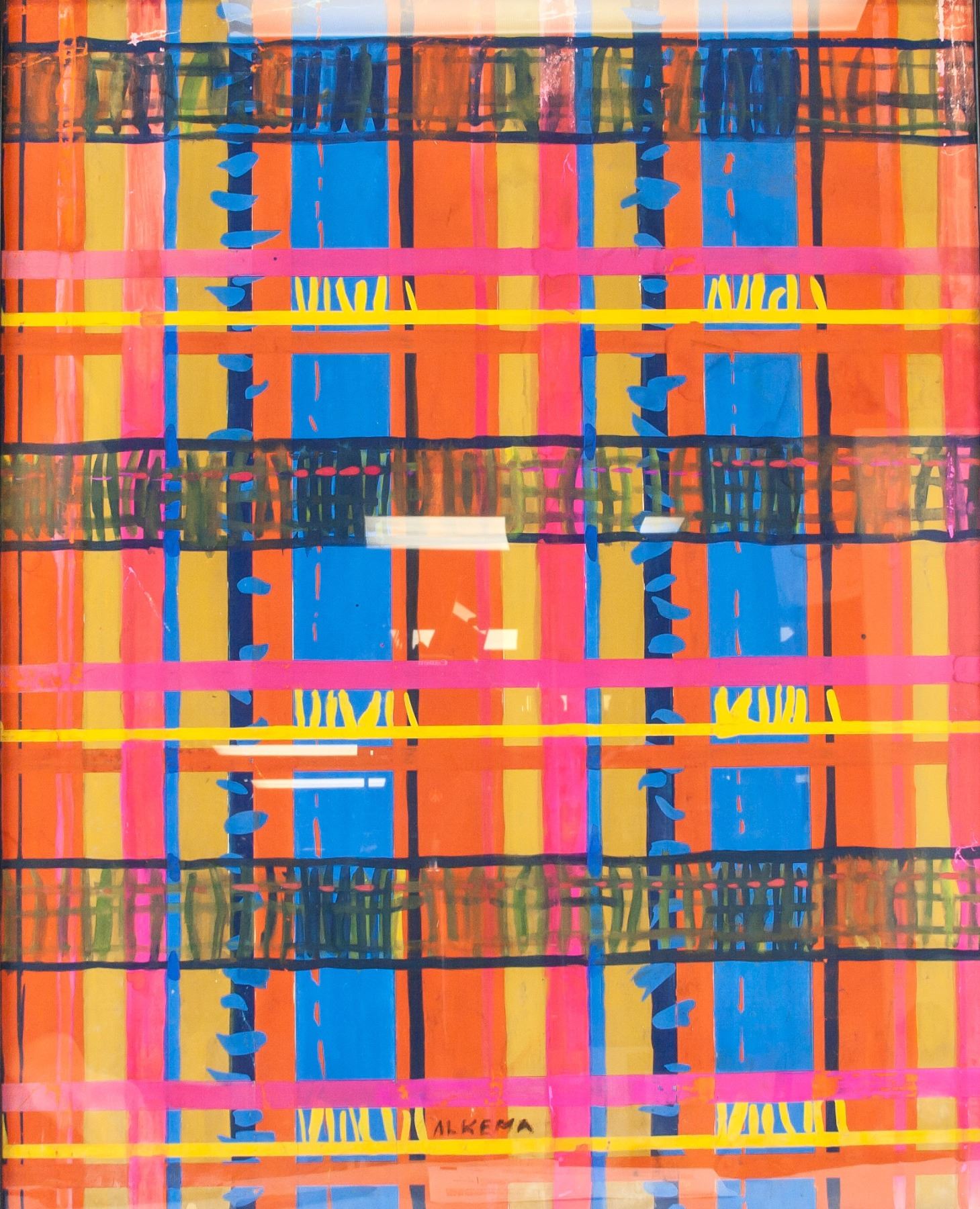 Gouache on paper, abstract expressionist composition. Signed and attr. Wobbe Alkema (Dutch, 1900-1984) near bottom edge. 20 x 16 in (50.8 x 40.6 cm), creases along upper section and a few creases in the center, verso of the frame is sealed. Alkema's work of the 1920s is relatively rare and consists of drawings, lino art and paintings. In these works there is no reference to natural forms. They are built up with overlapping circles, squares, triangles and lines. The geometric forms completely dominate the canvas and the colours are mainly dark. In his choice of geometric forms Alkema was very strict; his colouring was more free and intuitive. To Alkema, Mondriaan's restrictions in form and colour were much too limiting. For Alkema the circle was his main focus and starting point in his compositions while for Piet Mondriaan made his works based on a horizontal and vertical perspective. Alkema was actually one of the very first painters to develop from figurative works to completely abstract work with no links to reality. During a short period in the early 1920's Wobbe Alkema was a member of De Ploeg, a society of artists from Groningen. This group aimed at changing the narrow-minded and conservative art climate in the city. In style and ideas the artists were widely divergent. Today the group is mainly remembered for the expressionists Jan Wiegers, Jan Altink and Johan Dijkstra. Some of the De Ploeg artists had no affinity with this German oriented Expressionism and developed a style based on abstraction. This so called Gronings Konstruktivisme comprised artists such as Hendrik Nicolaas Werkman, Jan van der Zee and Wobbe Alkema. Even more important for his artistic development was his contact with the Belgian constructivist group around the magazine "Het Overzicht", with artists like Jozef Peeters and Felix de Boeck. In 1924 and 1925 Alkema travelled to Belgium to visit Peeters. His latest work was published in several issues of "Het Overzicht". The similarities between his work and that of the Belgian artists are evident but, according to Alkema, Belgium Constructivism was also too much based on theoretical principals. Alkema's Constructivism was based on intuition and personal emotions and had no theoretical foundation. As Ad Petersen mentioned: to Alkema "every painting is a personal expression, a means to find inner harmony and a pureness that did not exist in the outside world."