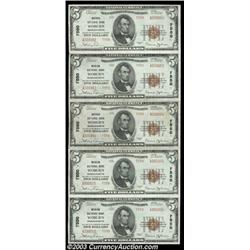 Woburn, MA - $5 1929 Ty. 2 Woburn NB Ch. # 7550A uncut strip of five notes, missing only the number