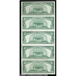 Woburn, MA - $5 1929 Ty. 2 Woburn NB Ch. # 7550A uncut strip of five notes, missing only the number 1 note. There are folds between each of the notes, with the top note grading About Uncirculated due to one sharp fold and the other four notes grading Choice Crisp Uncirculated. This is a scarce bank, and this low number strip of five should easily realize... Important notice: Heritage usually auctions material at the rate of 200-250 lots per hour. On some occasions eBay Live bid software or the Internet may not be able to keep up with the pace of the auction. We recommend placing a realistic absentee bid now as insurance to avoid disappointment. Occasionally the auctioneer may eliminate or reject an eBay Live bid, and the auctioneer may also reopen a lot after the close of the eBay live bidding (usually because we missed an audience bid), and may reject your bid even if it shows you as the winning bidder. By bidding via eBay Live, you agree that Heritage may award the lot to another bidder at its sole discretion under the circumstances described above or any other reasonable circumstances. Also please note that all Heritage lots purchased through eBay Live carry a 20% Buyer's Premium. Please make sure you read the Terms and Conditions before you bid.