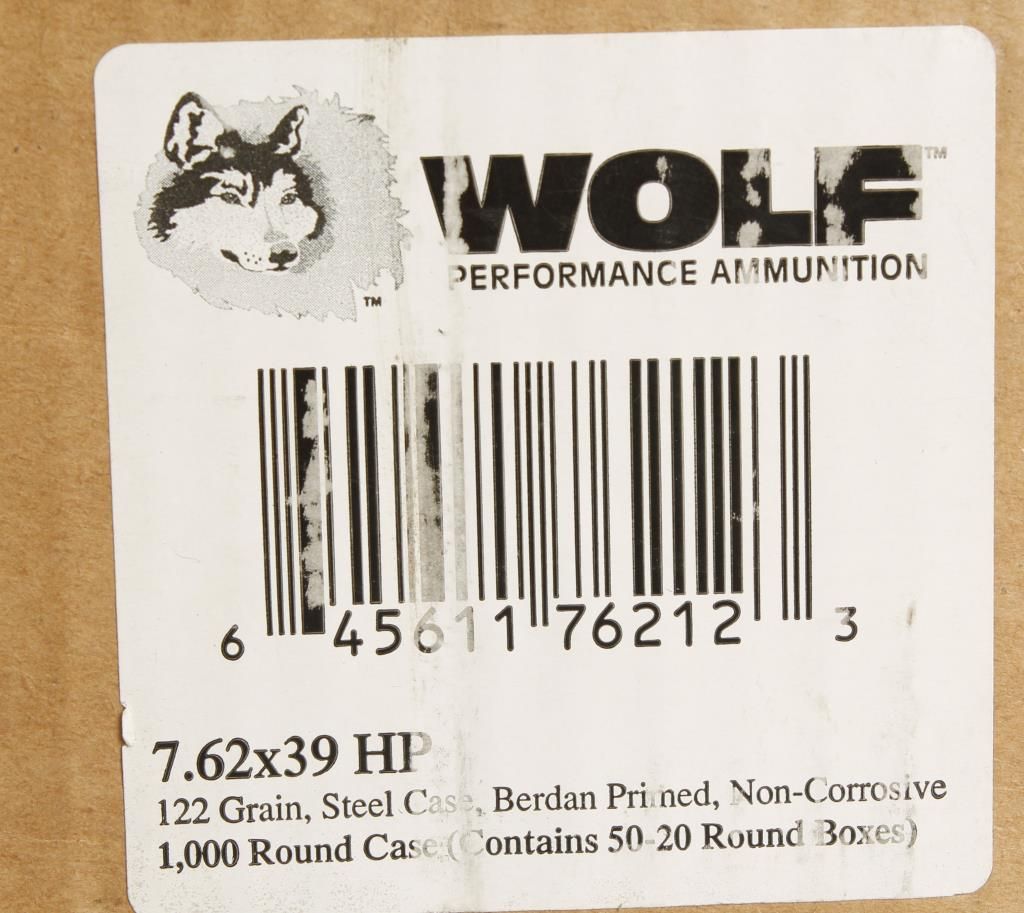 1,000 rounds, 122 grain, steel case, berdan printed, non-corrosive