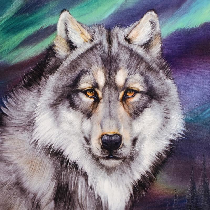 "Wolf Lights II" is a limited edition giclee on gallery wrapped canvas by Martin Katon, numbered and hand signed by the artist! Includes Certificate of Authenticity! Measures approx. 16" x 20" (image).