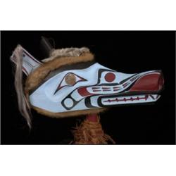Wolf Mask on Stand From Kingcome Inlet by Erni Martin 18" L. 8 1/2" H. Good Condition
