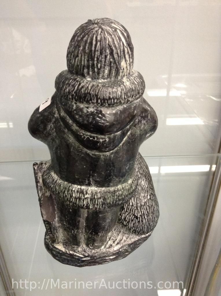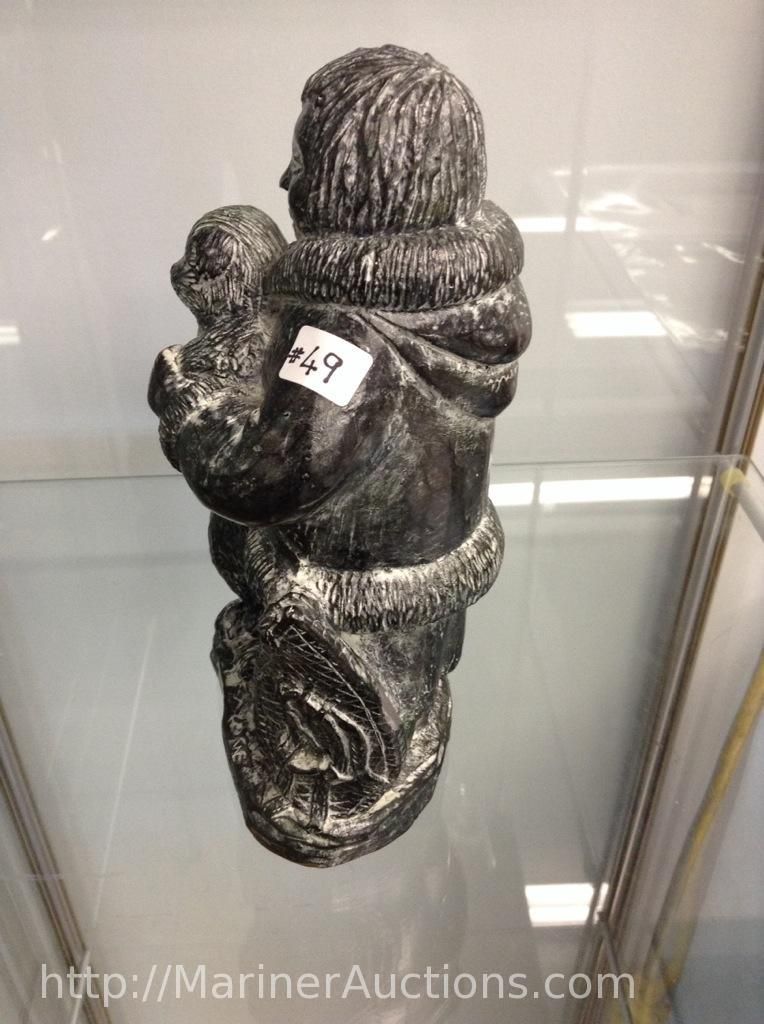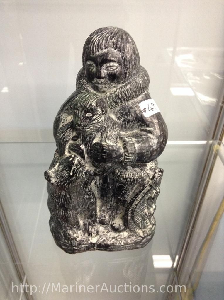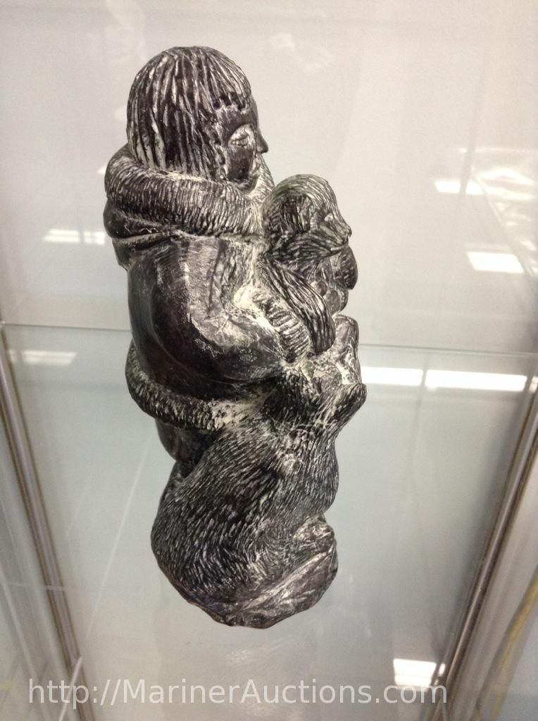 Wolf Soap Stone Sculpture (Hand Crafted in Canada) "Man, Dog and Puppy" (8" high")