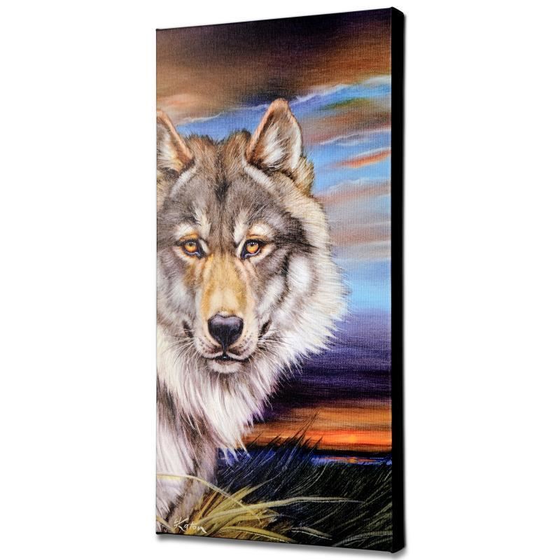 "Wolf" is a limited edition giclee on canvas by Martin Katon, numbered and hand signed by the artist! This piece comes gallery wrapped. Includes Letter of Authenticity. Measures approx. 12" x 24" (image). This item requires special handling and may have a longer than usual turnaround.