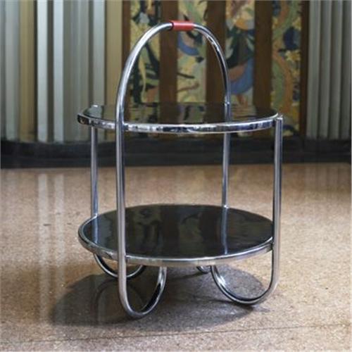 Wolfgang Hoffmann occasional table Howell Manufacturing USA, c. 1930 nickel-plated steel, laminate, Bakelite 21.5 dia x 26 h inches Signed with manufacturer's decal label to underside: [Manufactured by the Howell Co. Geneva , ILL].