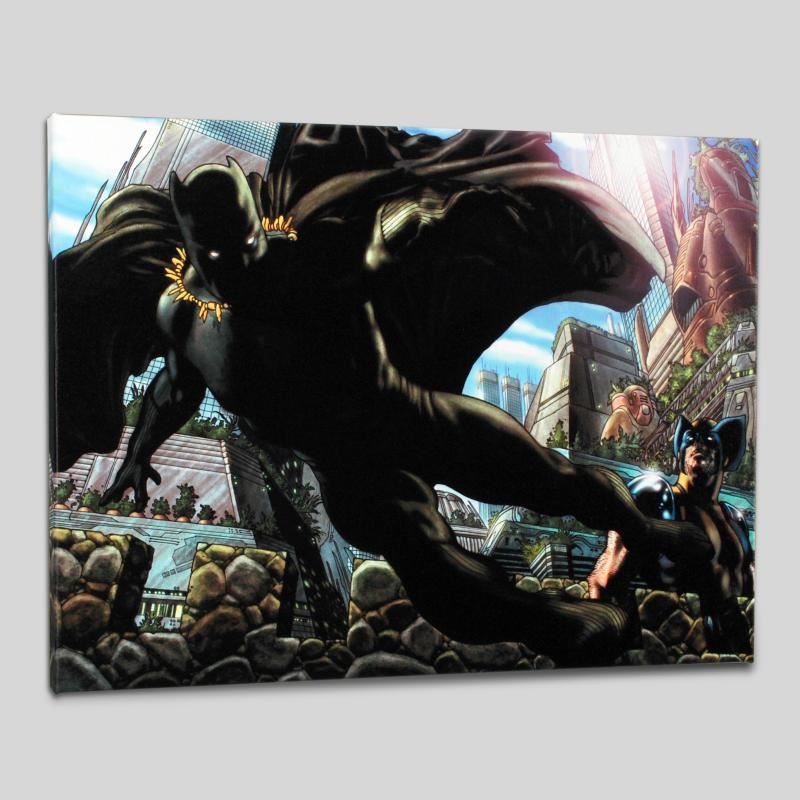 A piece of comic book history, this limited edition, from original art by Simone Bianchi, depicts a mysterious Black Panther. Known for his use of ink wash in his work, Simone Bianchi is an Italian comic book artist famous for his X-Men Unlimited artwork. "Wolverine #52" is a limited edition giclee on canvas by Simone Bianchi presented by Marvel Comics! This piece comes gallery wrapped and ready to hang. Includes Certificate of Authenticity! Measures approx. 24" x 18" (image).