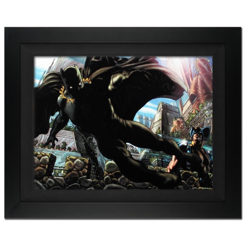 A piece of comic book history, this limited edition, from original art by Simone Bianchi, depicts a mysterious Black Panther. Known for his use of ink wash in his work, Simone Bianchi is an Italian comic book artist famous for his X-Men Unlimited artwork. "Wolverine #52" is an extremely limited edition giclee on canvas by Simone Bianchi presented by Marvel Comics, hand signed by the great Stan Lee and numbered out of only 10! This piece comes custom framed and ready to hang. Includes Certificate of Authenticity! Measure approx. 31" x 25" (with frame), 24" x 18" (image).