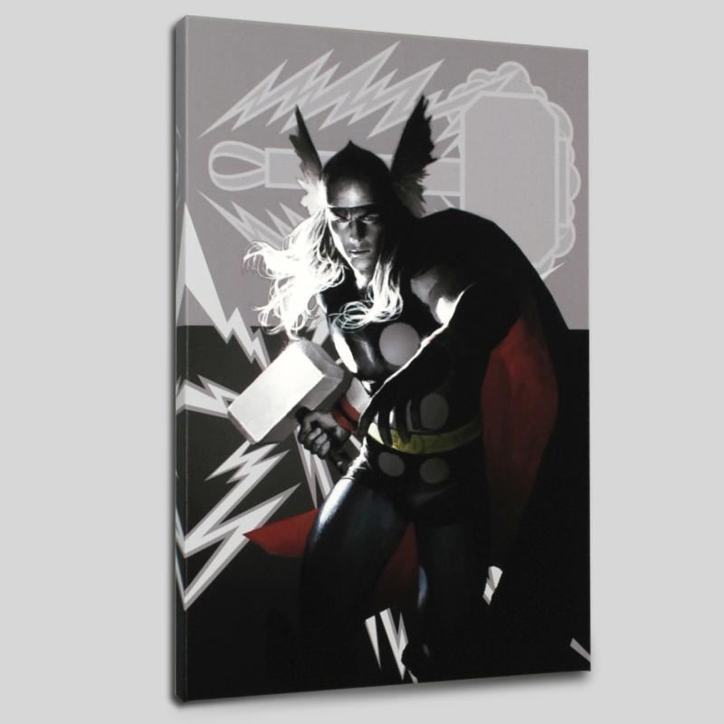 A piece of comic book history, this limited edition print, drawn by Al Barrionuevo, depicts the heroic Thor. Al Barrionuevo has worked on many DC titles as well as Marvel comics such as X-Men, Avengers: Solo, Marvel Zombies Destroy!, and Storm Watch. "Wolverine Avengers Origins: Thor #1 & The X-Men #2" is a limited edition giclee on canvas by Al Barrionuevo presented by Marvel Comics! This piece is gallery wrapped and ready to hang. Includes Certificate of Authenticity! Measures approx. 18" x 27" (image); 1.5" (depth).