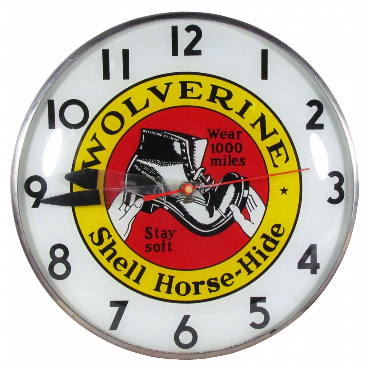 Wolverine Shell Horse-Hide Clock. "Shoe Soles". Excellent working condition. 15 inch diameter.