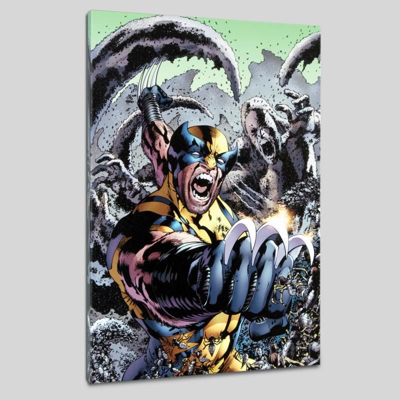 A piece of comic book history, this limited edition, from original art by Bryan Hitch, depicts an adventure packed scene starring Wolverine. British artist Bryan Hitch was inspired by comic books at an early age. Not only has Hitch worked on the The Avengers, Captain America, and She-Hulk, but he also did the character design for the Ultimate Avengers and Ultimate Avengers 2 animated films. "Wolverine: The Best There Is #10" is a limited edition numbered giclee on stretched canvas by Bryan Hitch presented by Marvel Comics. This piece comes gallery wrapped and ready to hang. Includes Certificate of Authenticity! Measures approx. 18" x 27" (image); 1.5" (depth).