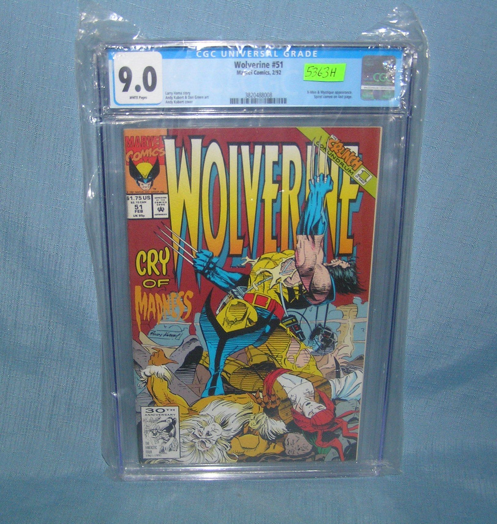 Wolverine number 51 Cry of Madness comic book graded 9.0 est. value $150.00-$200.00