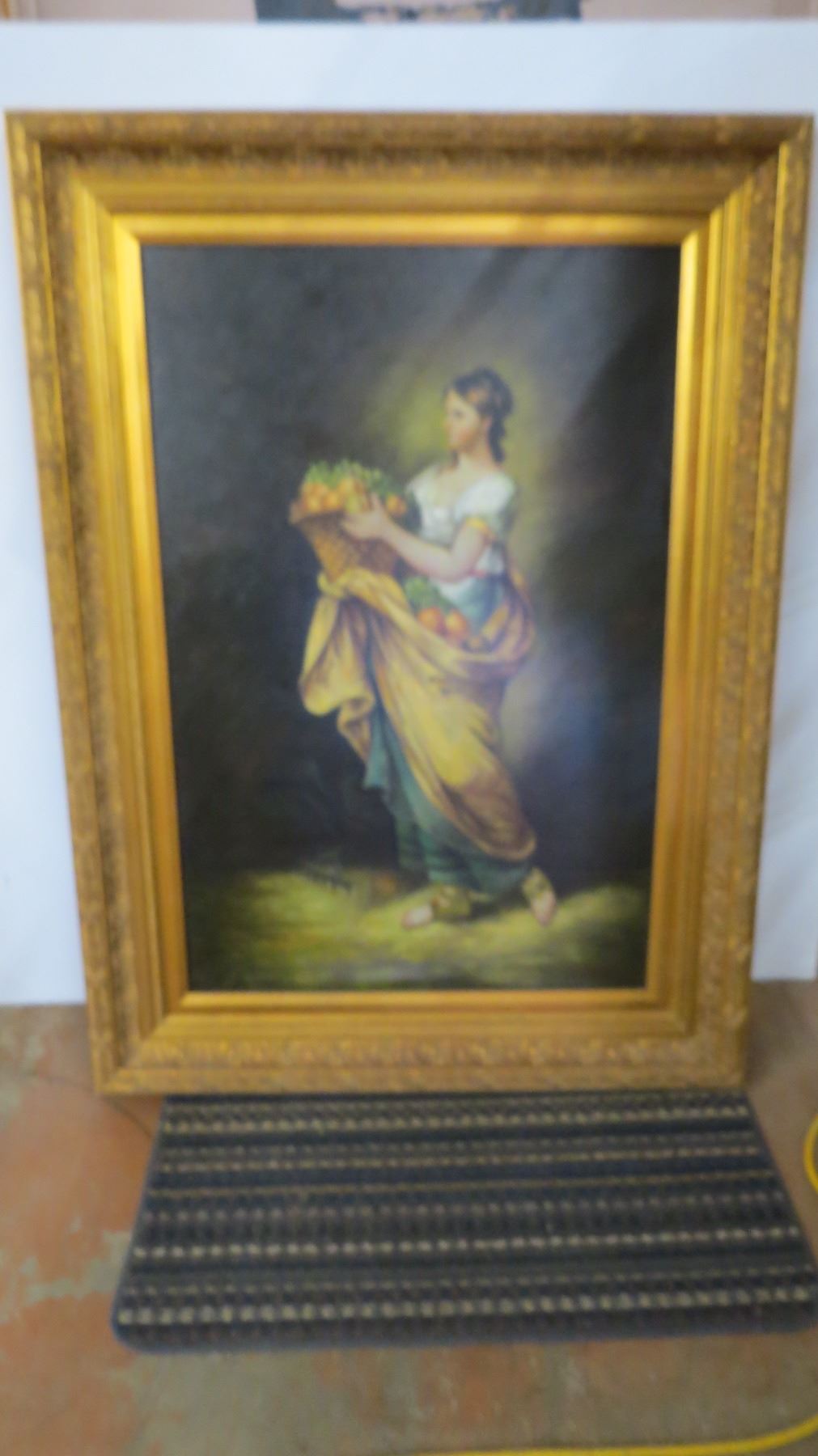 *Woman Holding Fruit Painting in golden Frame 33X46"