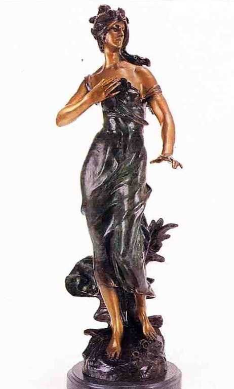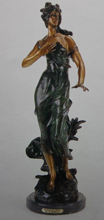 "Woman In Wind" Bronze Sculpture - After A. Moreau - Museum Brown/Beautiful Color Patina - Mounted On Fine Marble Base - Signed - Mint Condition - 35"H X 11"W - Lost Wax Cast Bronze