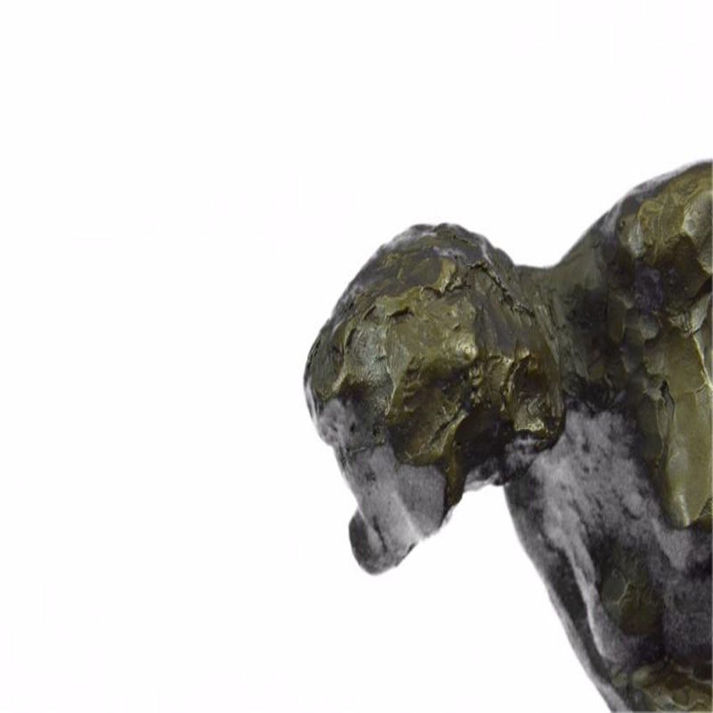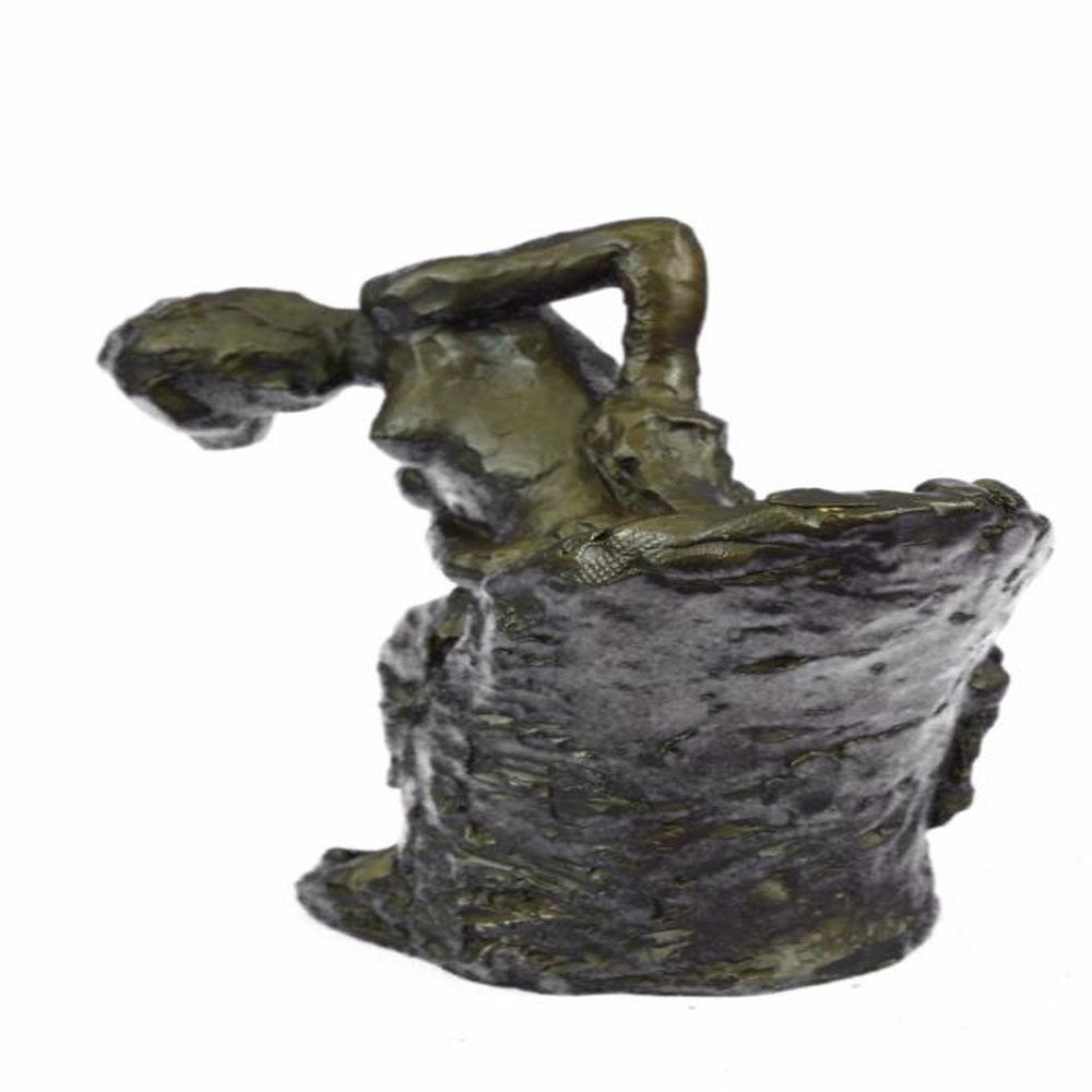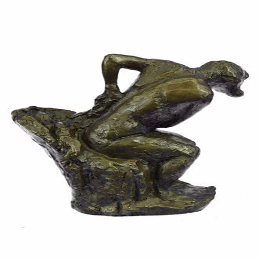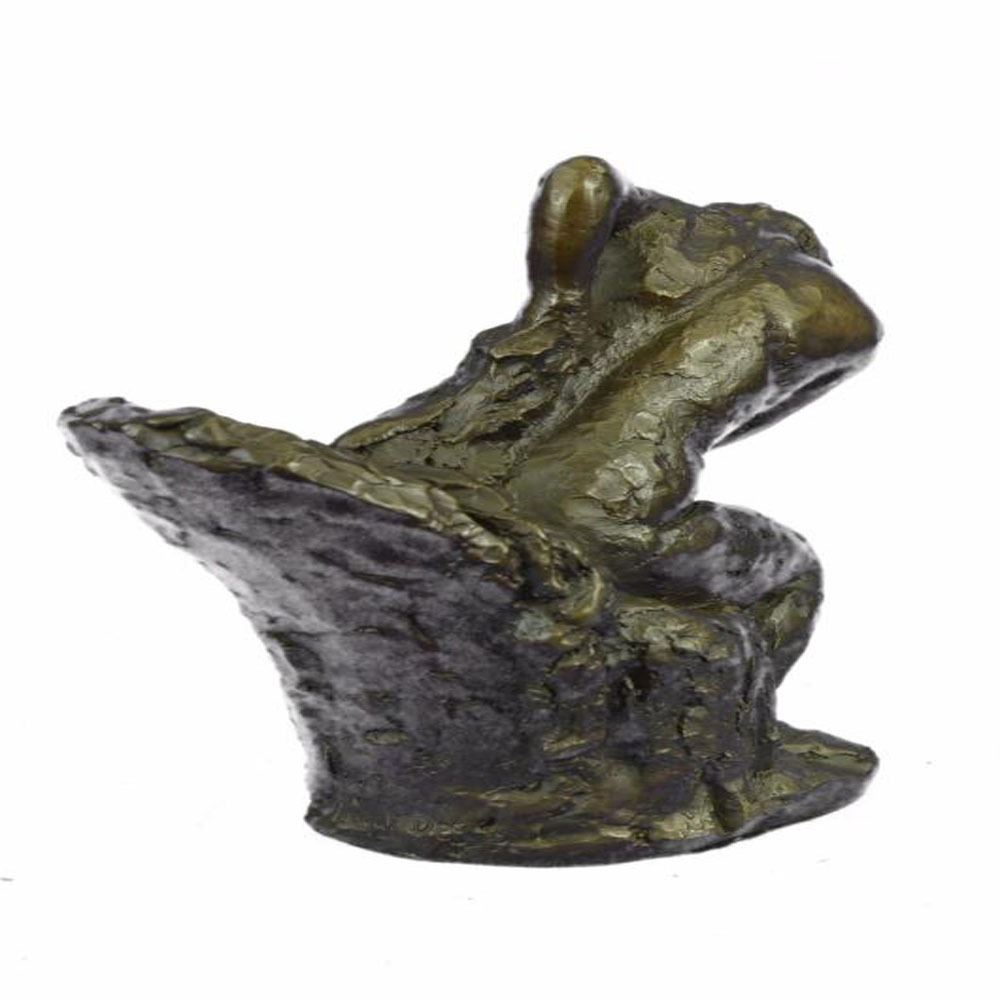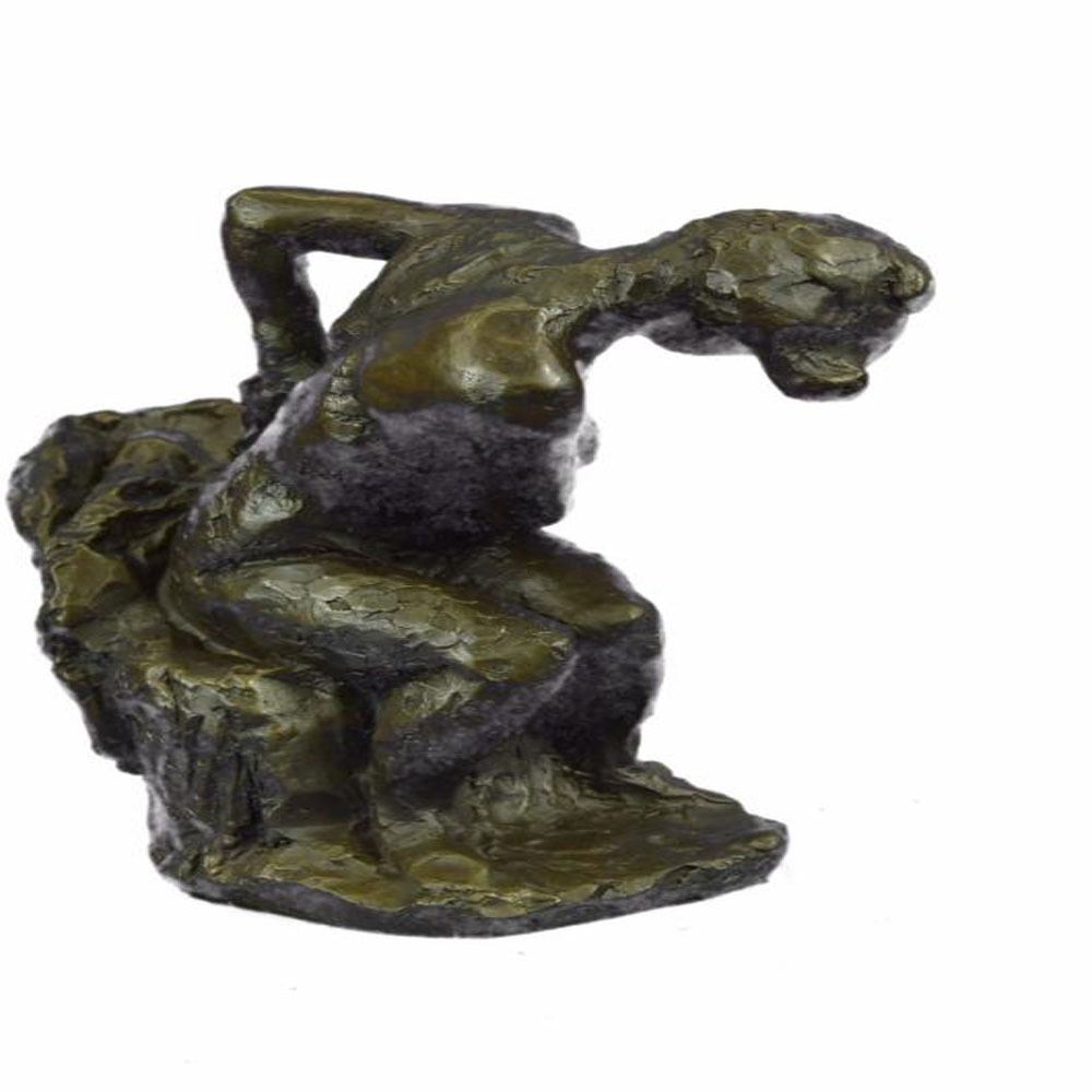 Degas made many drawings and pastels of similar figures of women unconsciously combing their hair or washing and drying themselves. A charcoal drawing in the Von der Museum in Pubertal, Germany, depicts a woman in an identical position, seated next to a bathtub. The drawing is thought to date from about 1895. Working on a small scale, which prompted visitors to the artist studio to compare his figures to dolls, Degas modeled the original Sculpture from which this Bronze was cast in wax. The cork incorporation in the wax are still visible on the back of the Sculpture, which is now in the National Gallery of Art in Washington, D.C. This brown patina Sculpture was cast using the Lost Wax Method. Bronze Dimensions: Height 7 X Width 8 inches. Weight: 5 LBS.