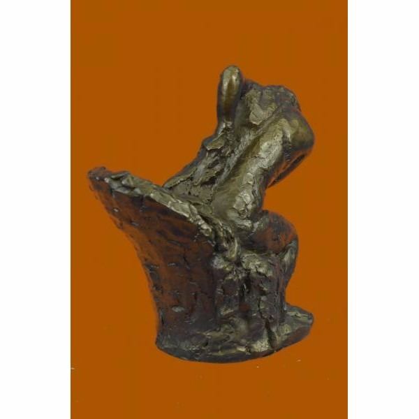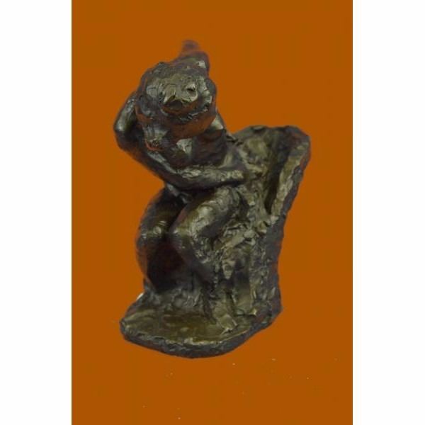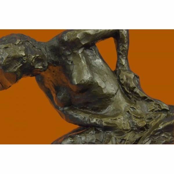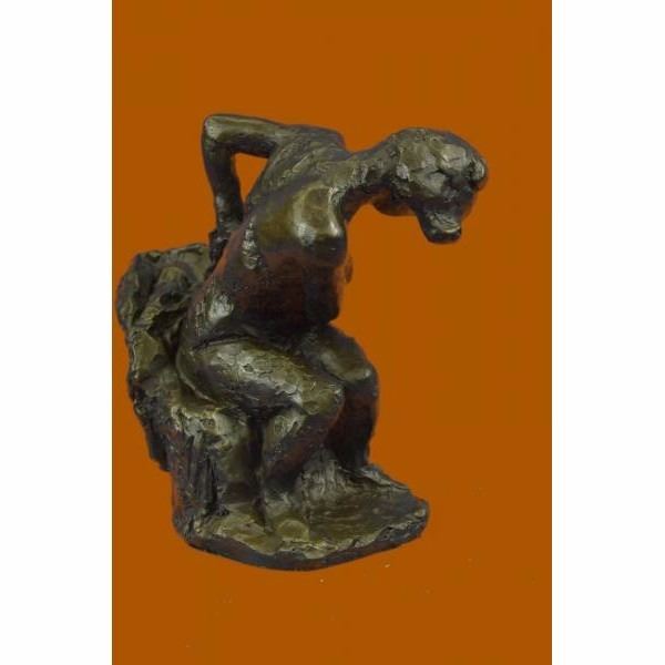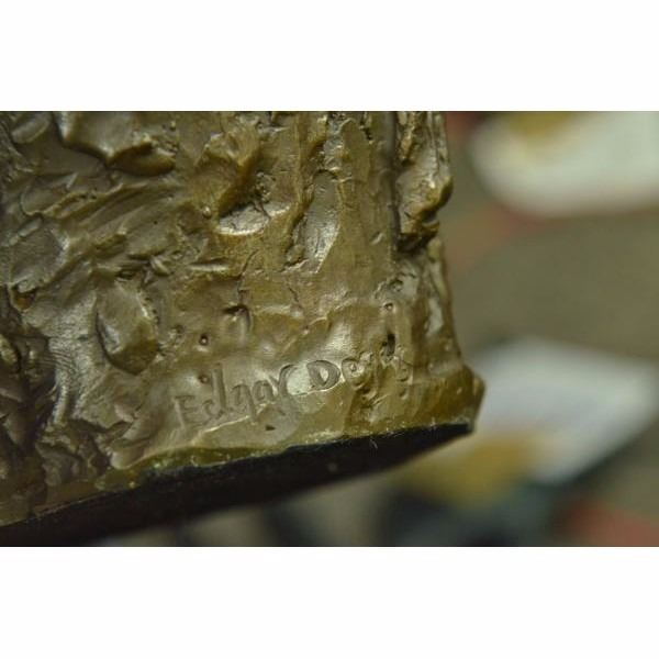 Degas made many drawings and pastels of similar figures of women unselfconsciously combing their hair or washing and drying themselves. A charcoal drawing in the Von der Heydt-Museum in Wuppertal, Germany, depicts a woman in an identical position, seated next to a bathtub. The drawing is thought to date from about 1895. Working on a small scale, which prompted visitors to the artist's studio to compare his figures to dolls, Degas modeled the original sculpture from which this bronze was cast in wax. The cork incorporations in the wax are still visible on the back of the sculpture, which is now in the National Gallery of Art in Washington, D.C. 100% bronze and handmade, this brown patina sculpture was cast using the "Lost Wax Method" and is signed by artist Edgar Degas. Condition: This sculpture is in perfect condition. Bronze Dimensions :Height 7" X Width 8" Weight : 5 LBS Inventory:60XN14465906