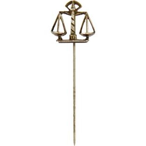 <B>Woman Suffrage "Equal Suffrage" Stickpin.</B></I> This rare and interesting stickpin in the shape of "Equal Legal Scales" was issued to call for Equality for Women. It was the symbol of the Equal Suffrage League movement in South Dakota and was featured on and in their literature, including their songbook, as illustrated in <I>Winning the Vote,</B></I> page 55. It is hallmarked, and measures 2" x 0.75". Excellent condition.