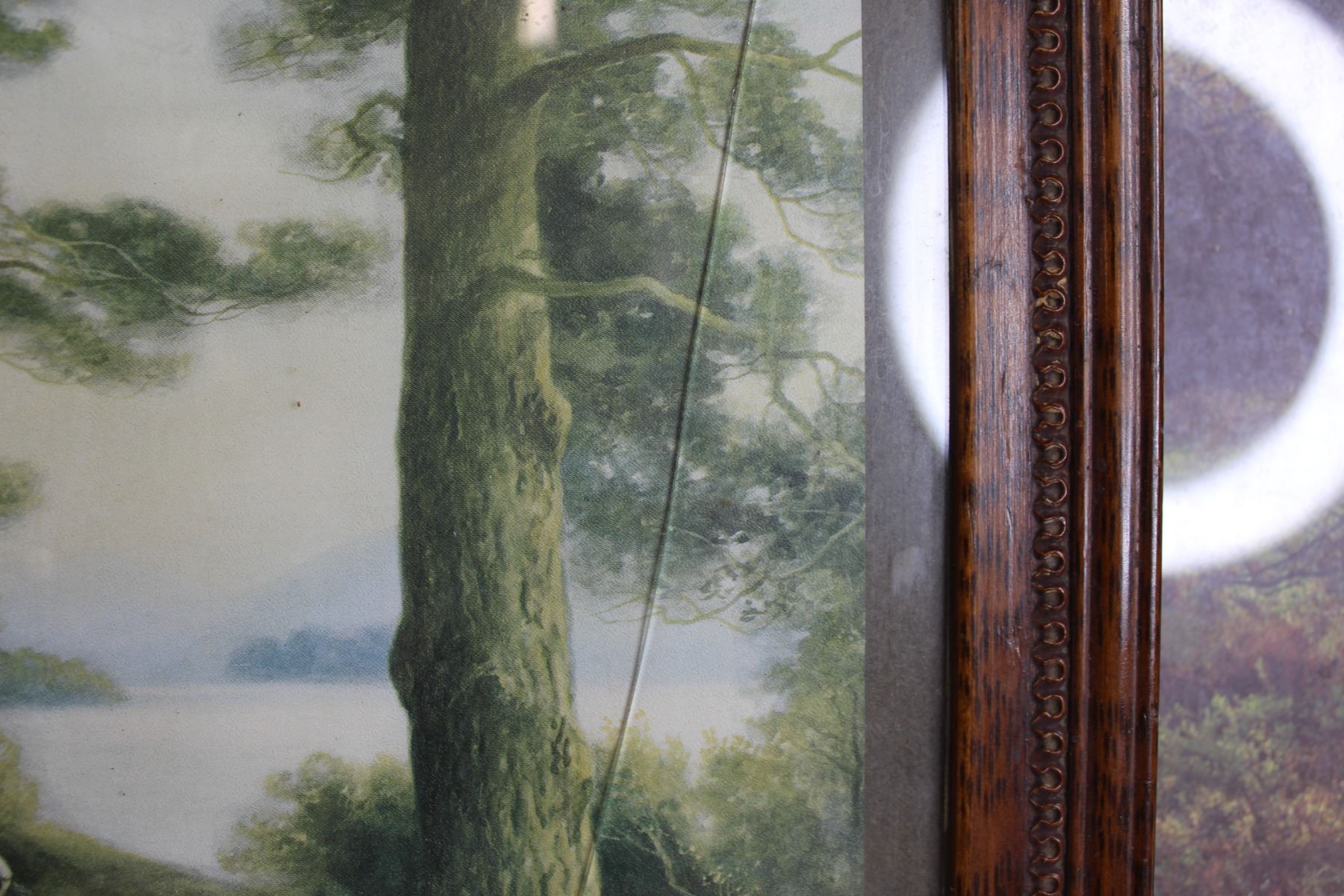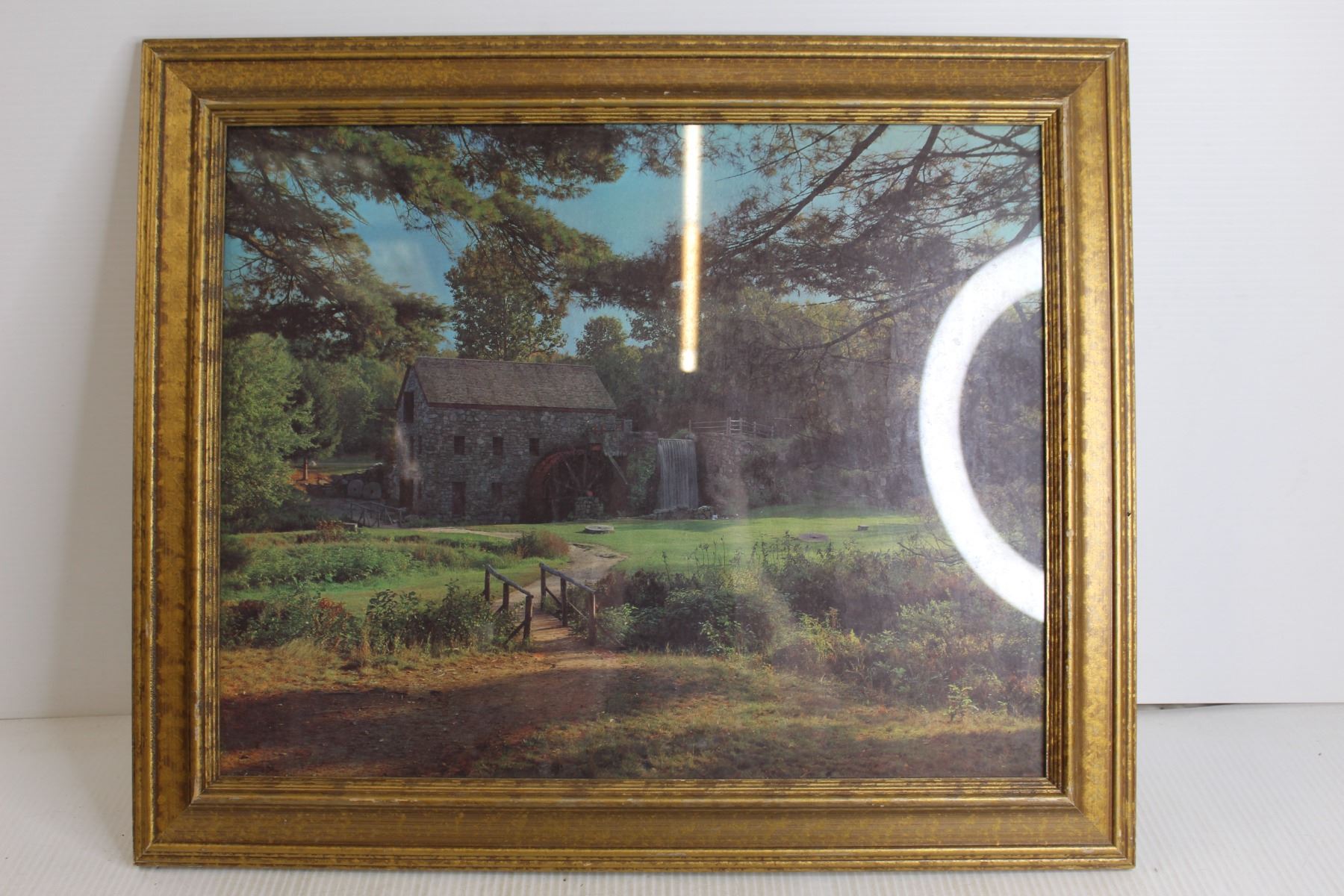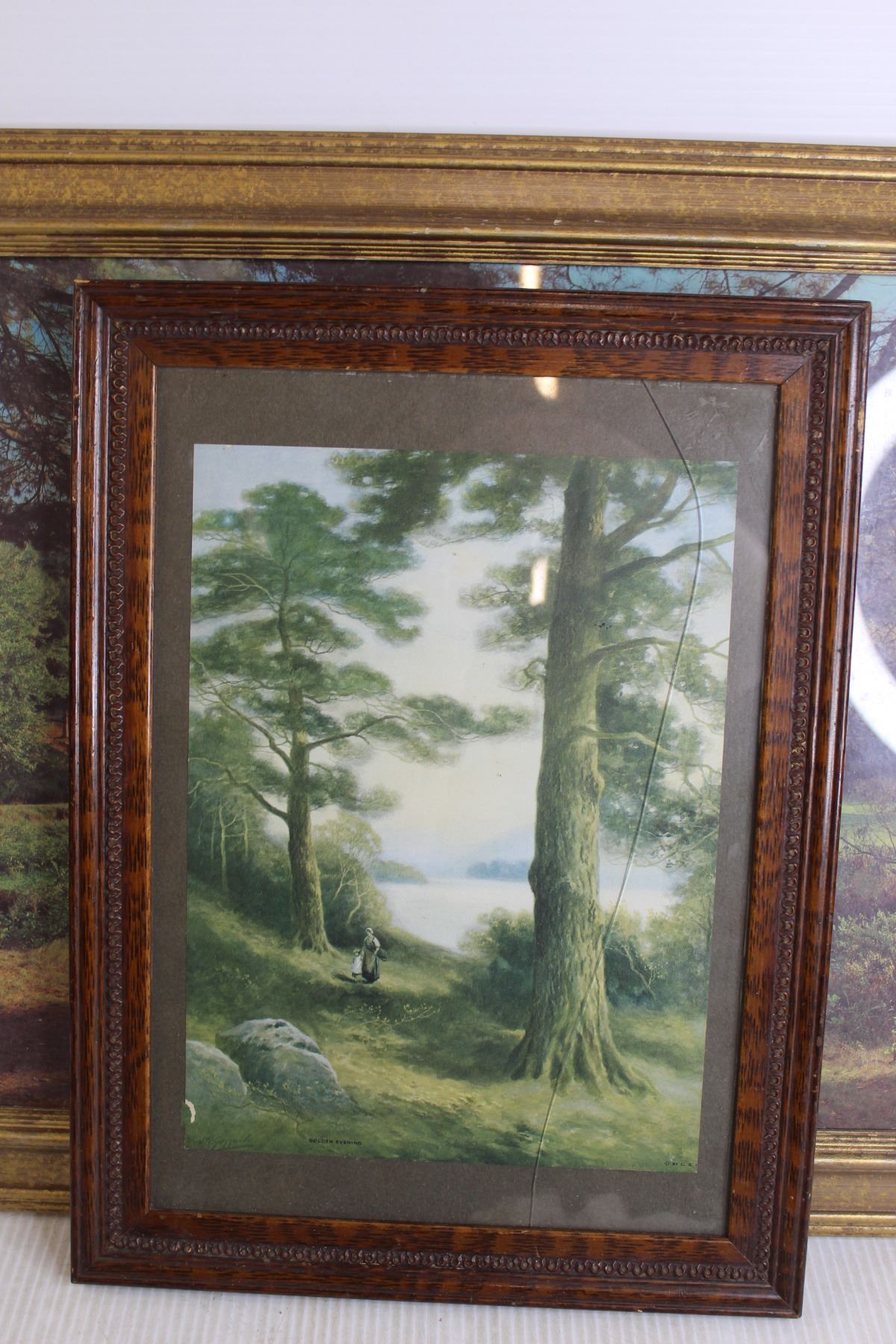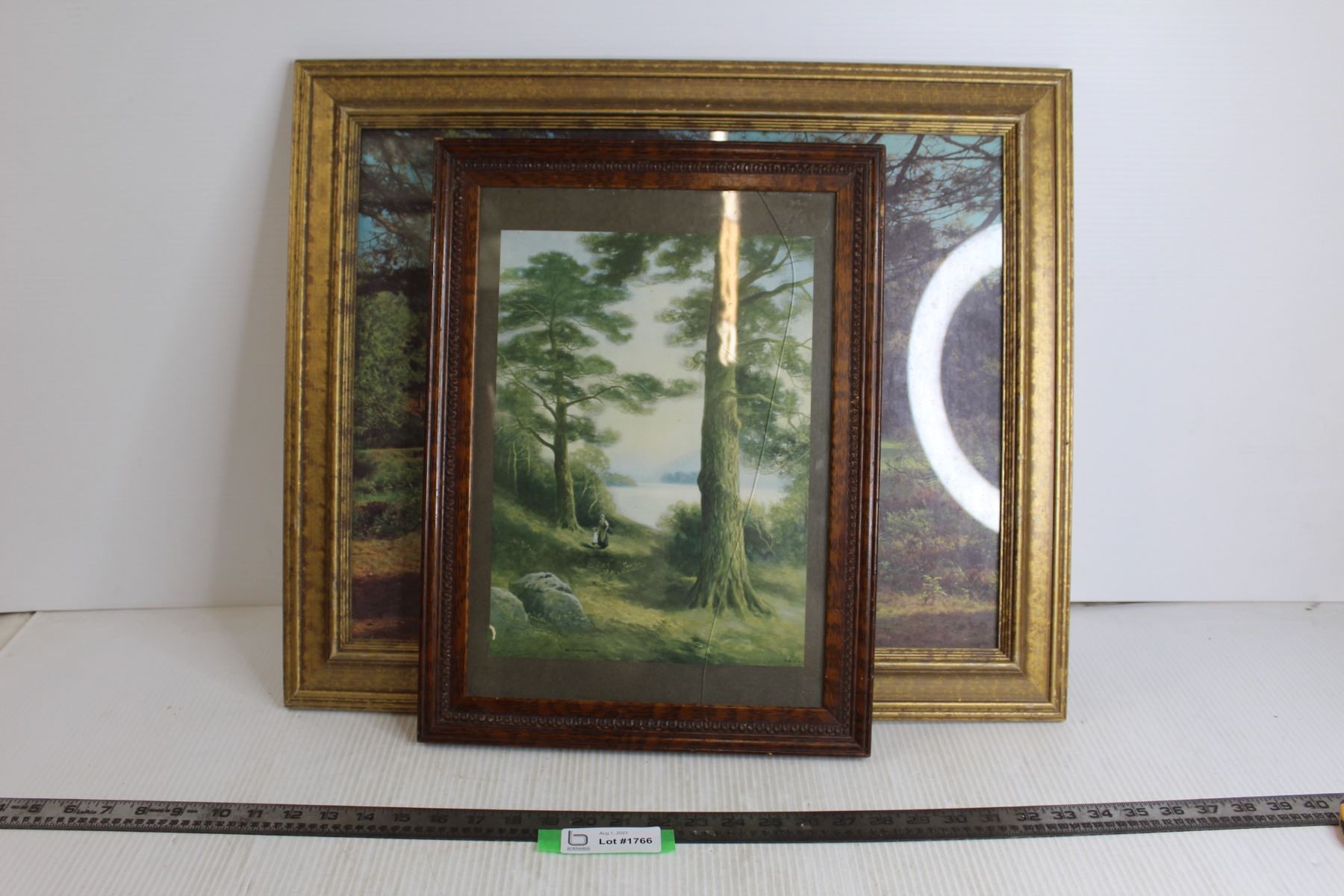 Woman and Child Walking in Forest Print (Cracked Glass), Stone House in Forest Picture Print (17 3/4" x 13", 24" x 19 1/2")
