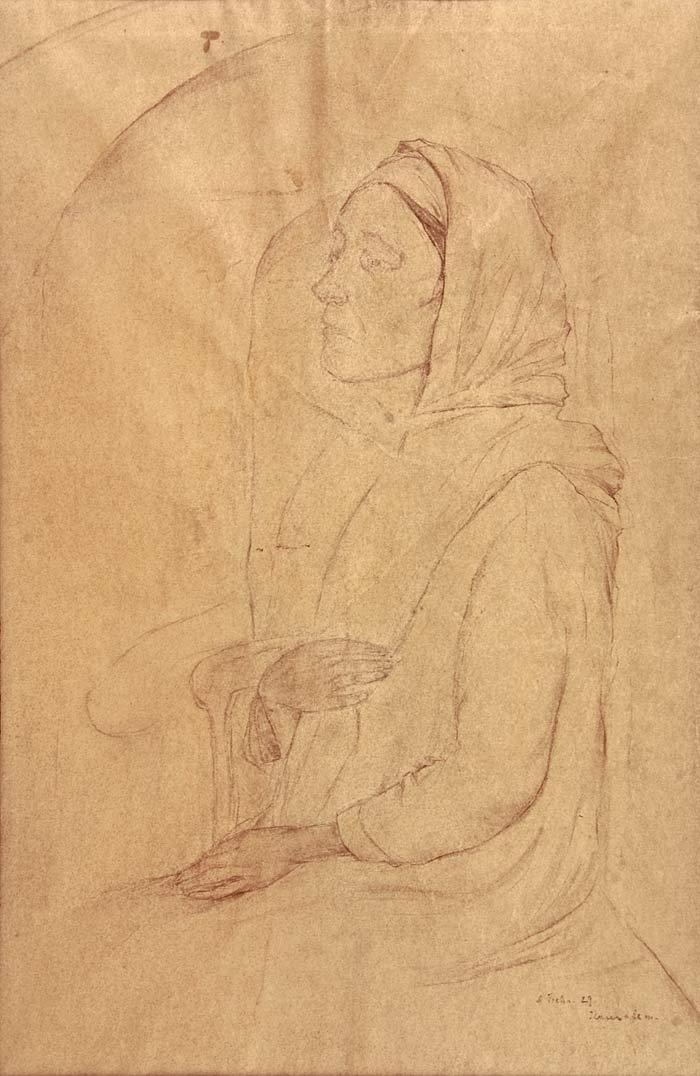 Woman in Jerusalem, signed, dated 29 and inscribed "Jerusalem" (lower right)
