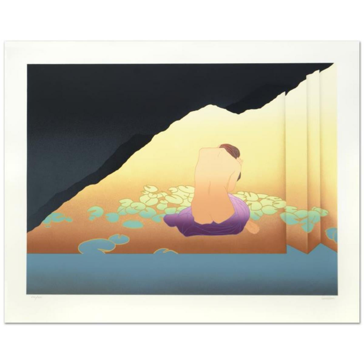 "Woman in Lillied Shoji" is a limited edition serigraph on paper by Derrick Brown, numbered and hand signed by the artist! Includes Certificate of Authenticity! Measures approx. 46" x 36.5" (with border), 40" x 30" (image). Reference #: 211803.