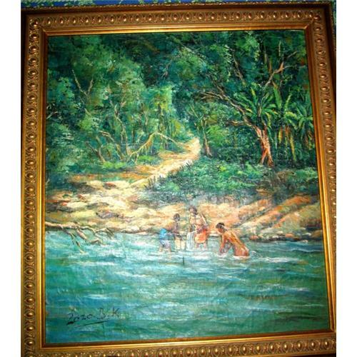 Beautiful framed Painting with 3 woman , making the laundry in the River , in Africa