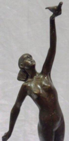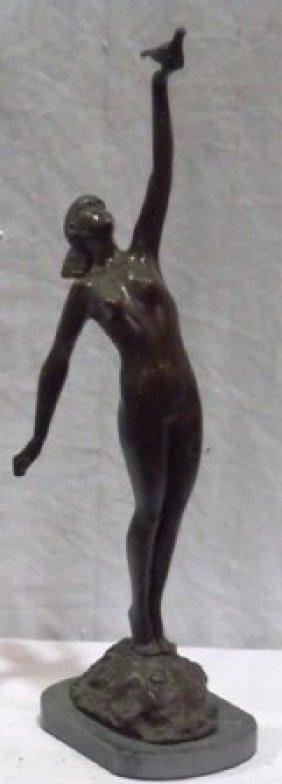 Bronze sculpture on Marble base. 22" H, 5" W, 7.5" D