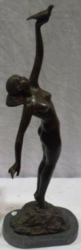 Bronze sculpture on Marble base. 22" H, 5" W, 7.5" D