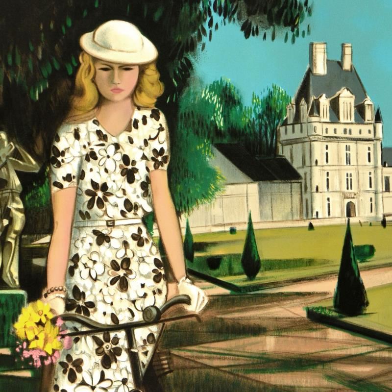 "Woman with Bicycle" is a limited edition lithograph on paper by Robert Vernet Bonfort, numbered and hand signed by the artist! Measures approx. 29.5" x 21" (border), 27" x 19" (image).