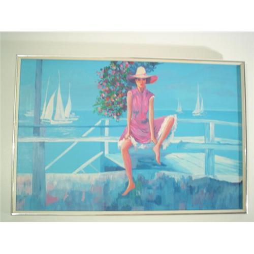 "Classy Lady" - Signed Domenica. Framed & in excellent condition. Measures 20"x30". Bright blue colors. Oil on canvas. Just the way she sits I could tell its going to be a very nasty trip.