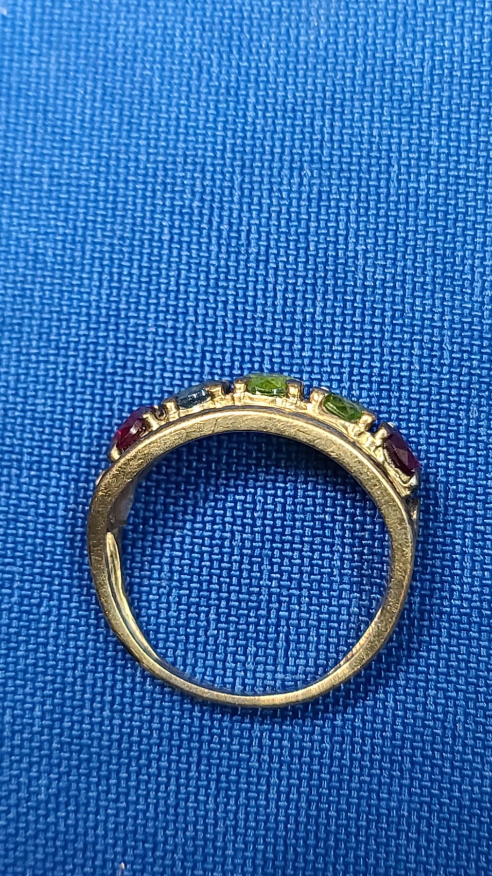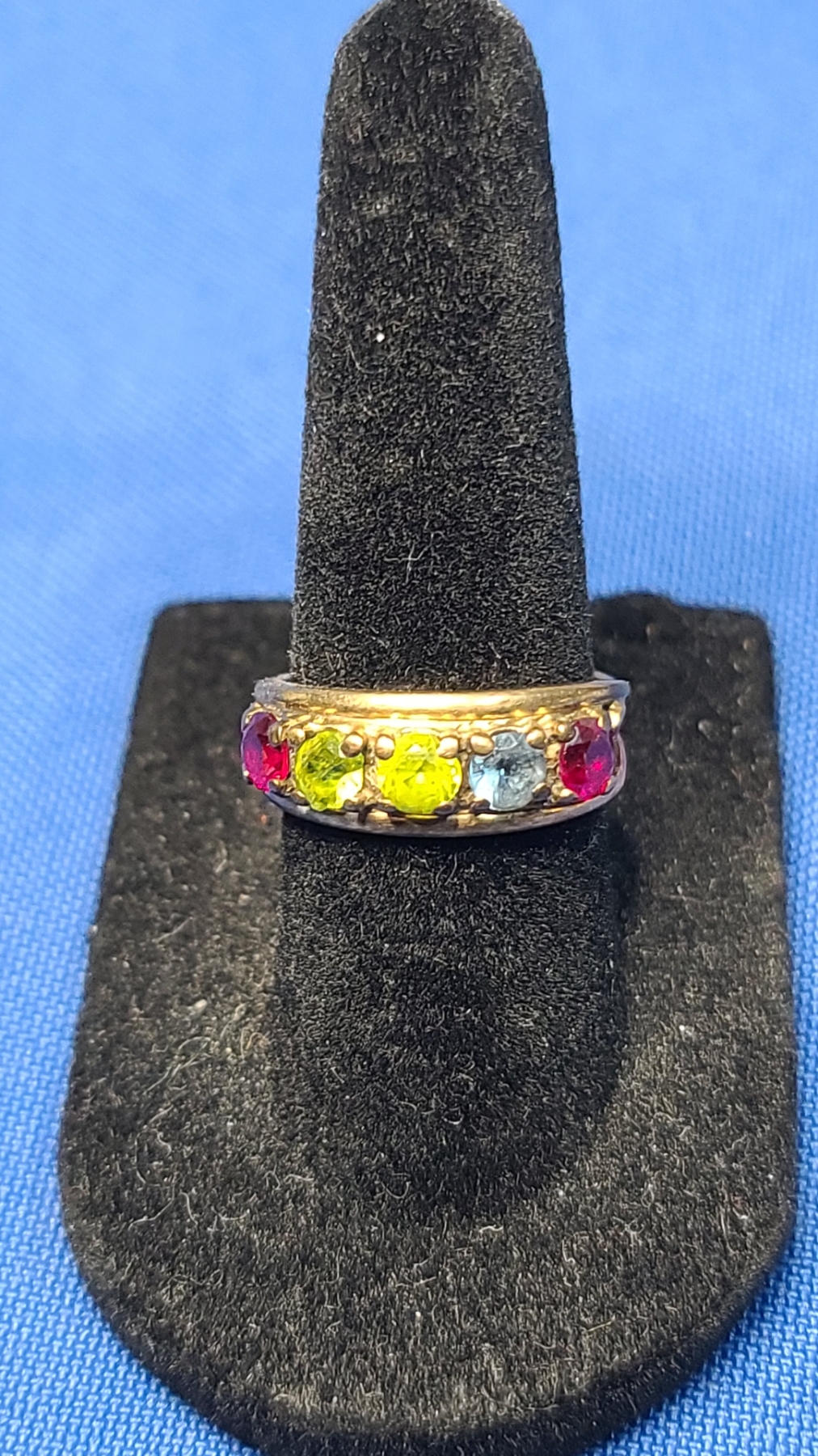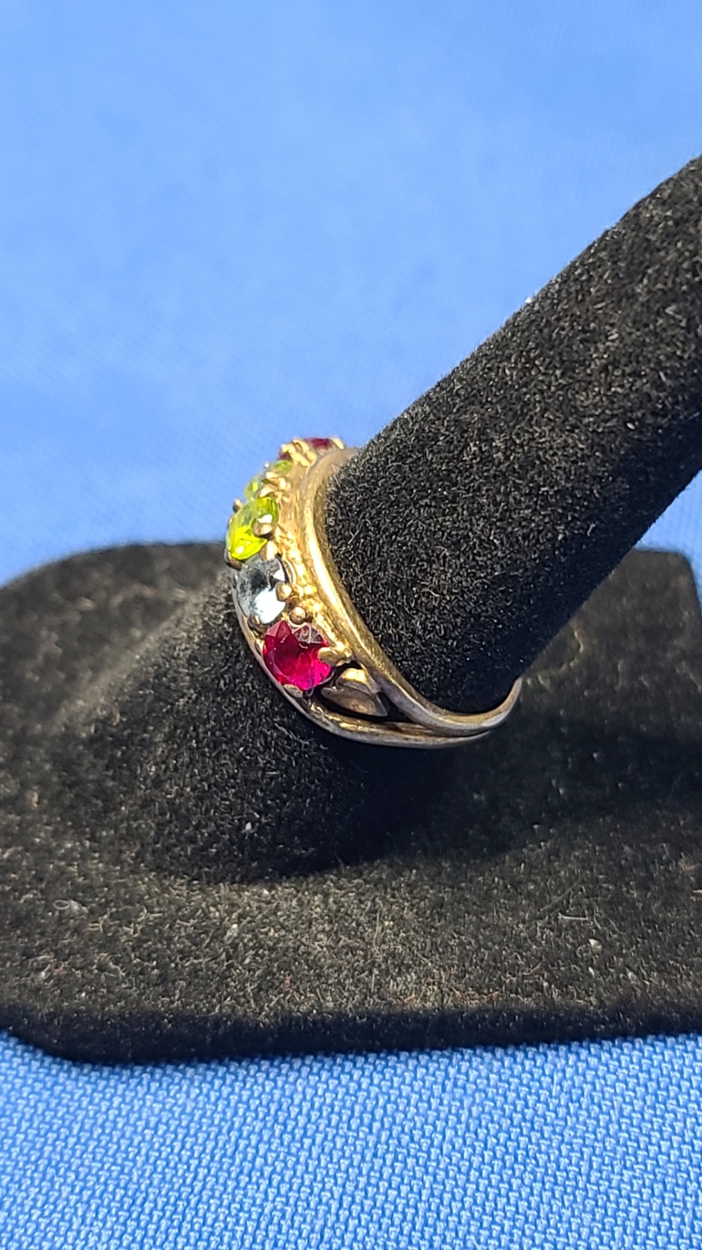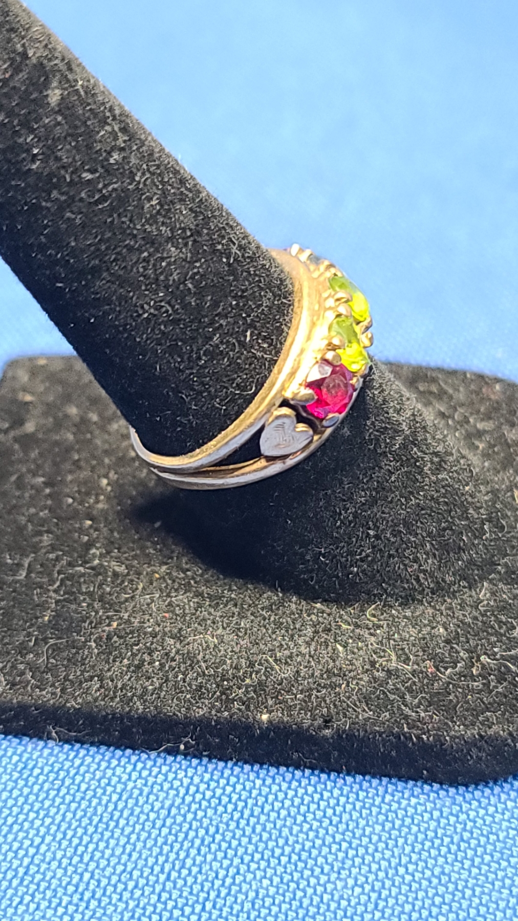 Women's 10K Gold Ring With Multi-Colored Stones & Heart Design On Side - Size: 6 - Weight: 3.0g