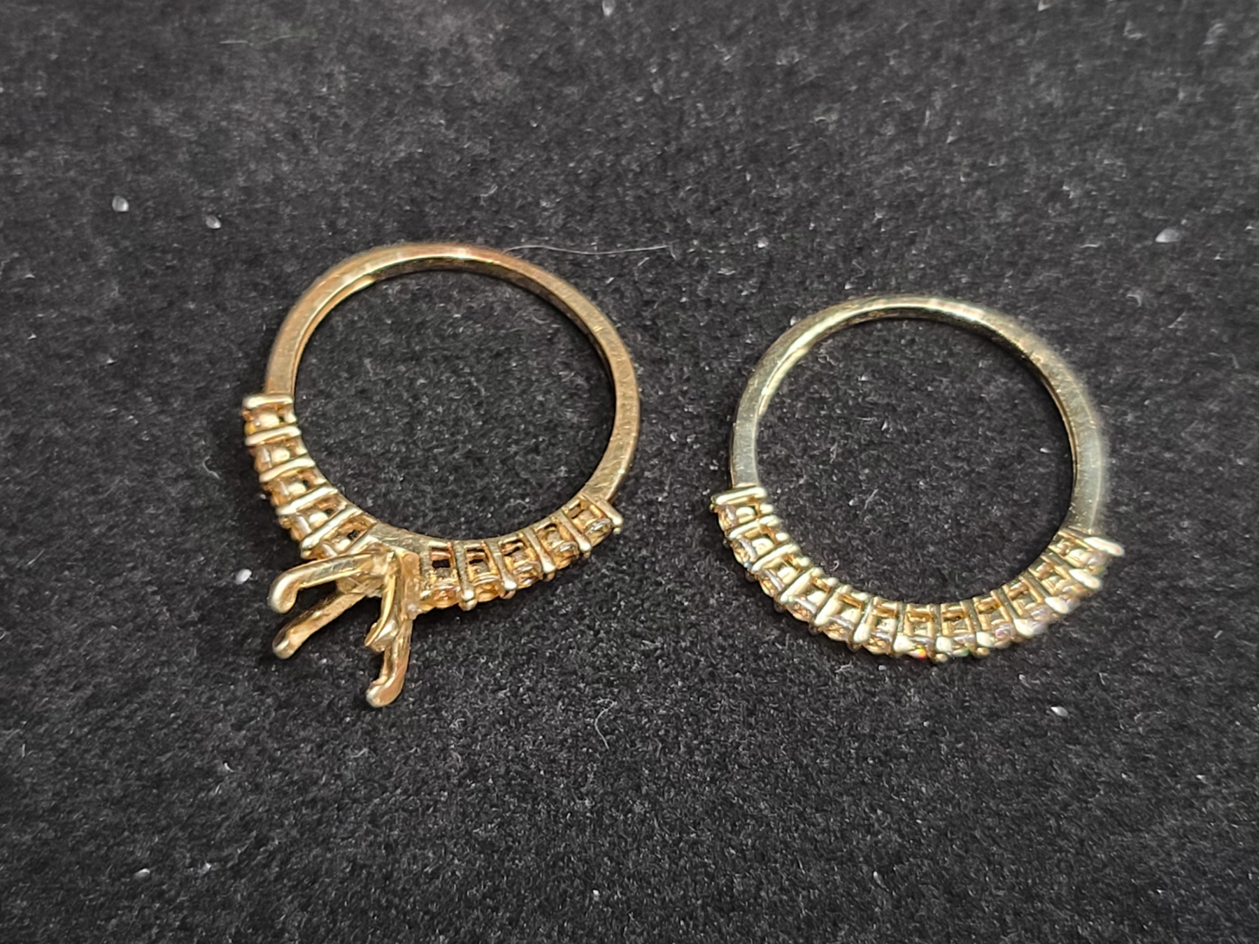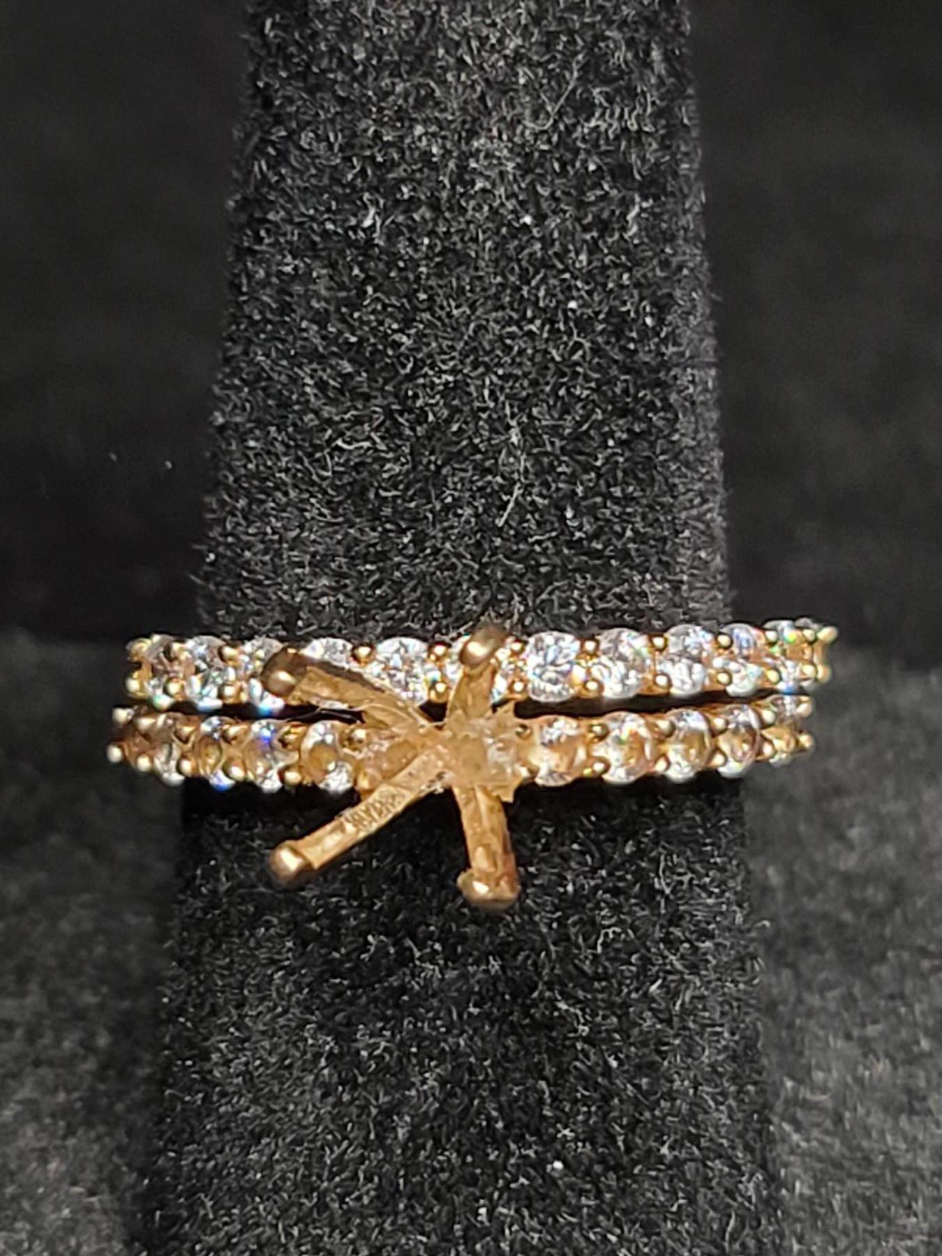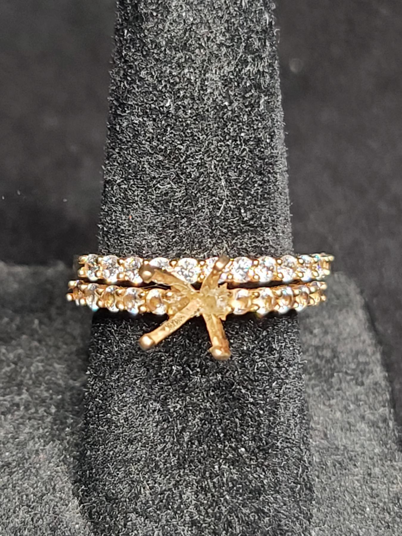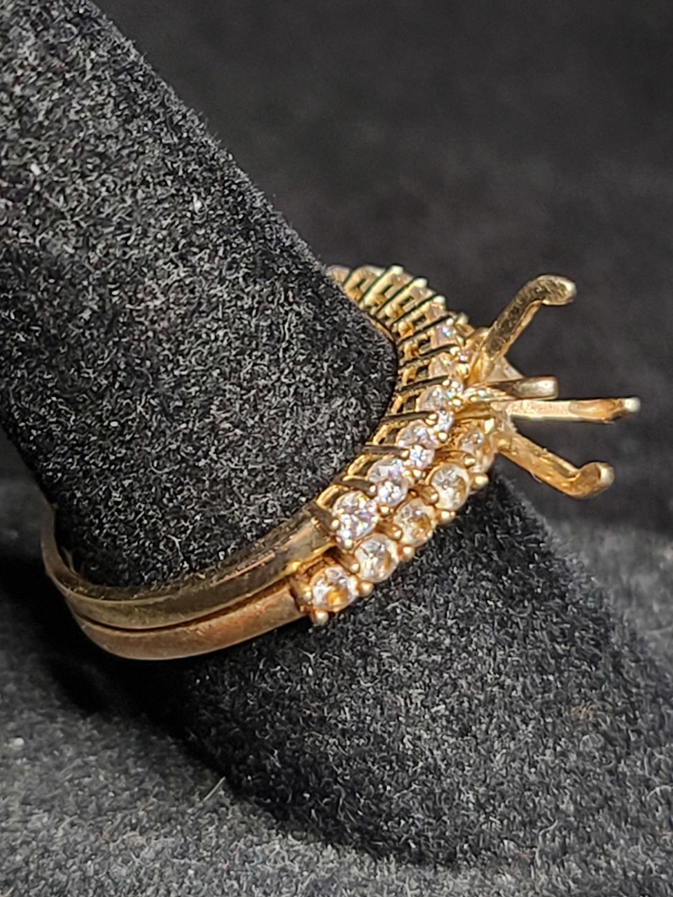 Women's 14K Gold Ring Set With Clear Stones - One Is Open Setting - Size 7 - Weight: 3.2g