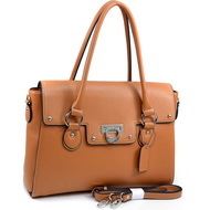 Women's Briefcase Style Satchel w/ Flip Clasp Closure and Bonus Strap - Tan
