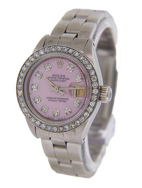 Dial Original Rolex Face, Professionally Custom Refinished with Custom Added Pink Mother of Pearl Stone and Custom Added Genuine Diamonds