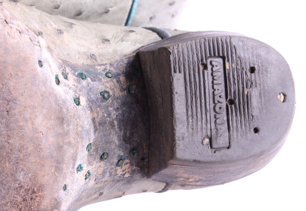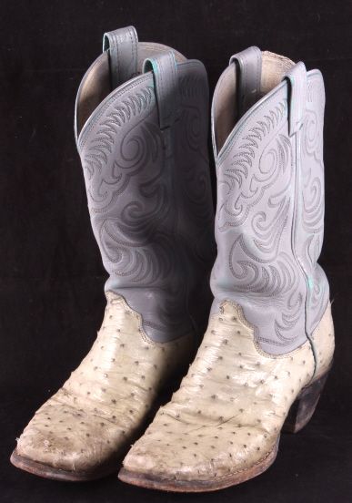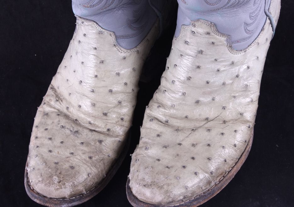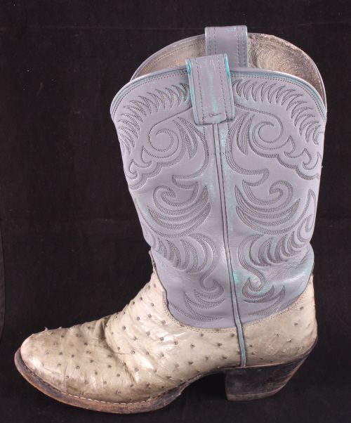 This is a pair of women's ostrich cowboy boots. They were made by the Olathe Boot Company in Olathe, Kansas. They are a size 8.5D. The boots are in good condition.