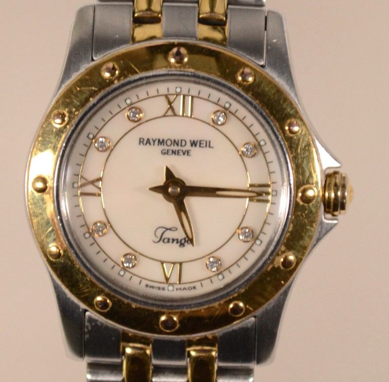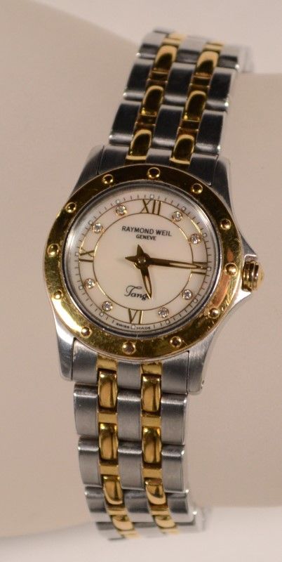Seller Notes: Bezel has wear marks, few small scratches on back case, Brand: Raymond Weil Band Material: Stainless & Plated Metal Gender: Women's Movement: Quartz : Battery Style: Casual Display: Analog F