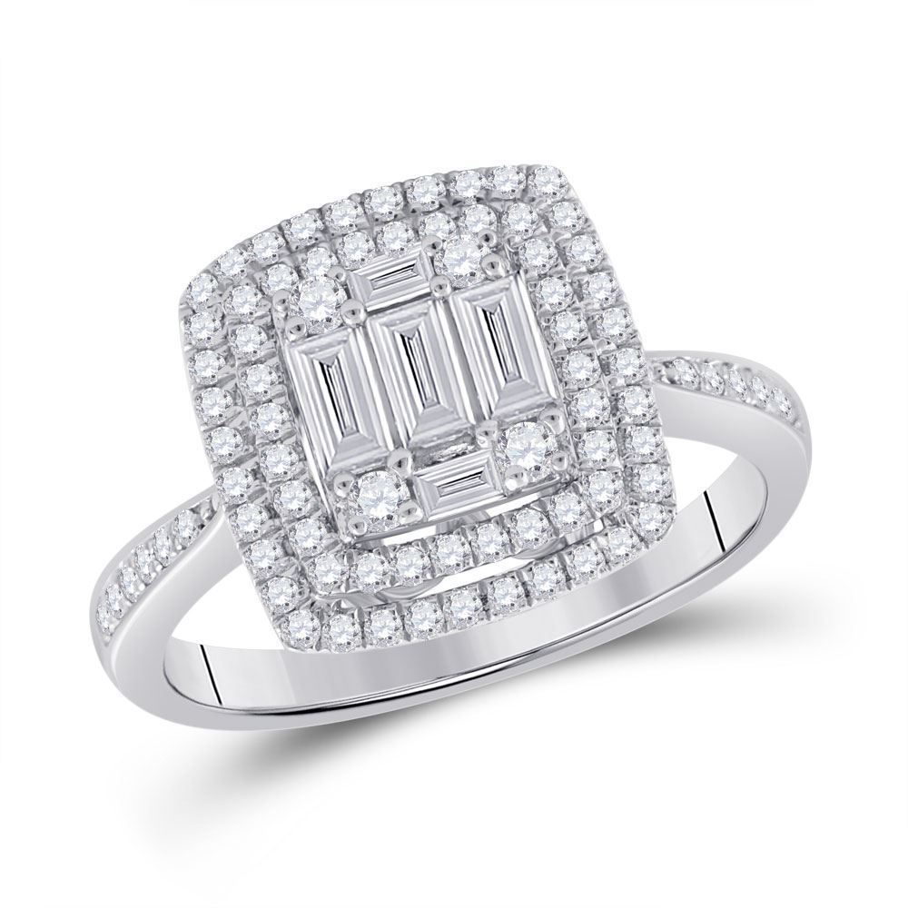 REF-93N9F ---- Womens Baguette Diamond Square Ring 7/8 Cttw 14kt White Gold