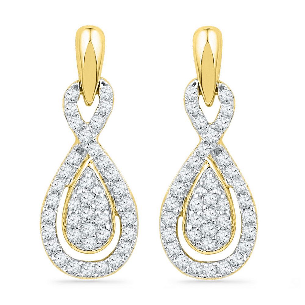 10k Yellow Gold Womens Diamond Oval-shape Dangle Earrings 1/3 Cttw