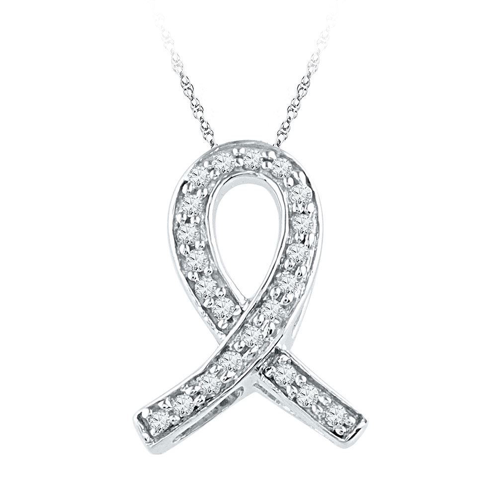 REF-6M9H ---- Womens Diamond Ribbon Awareness Symbol Pendant 1/10 Cttw 10k White Gold