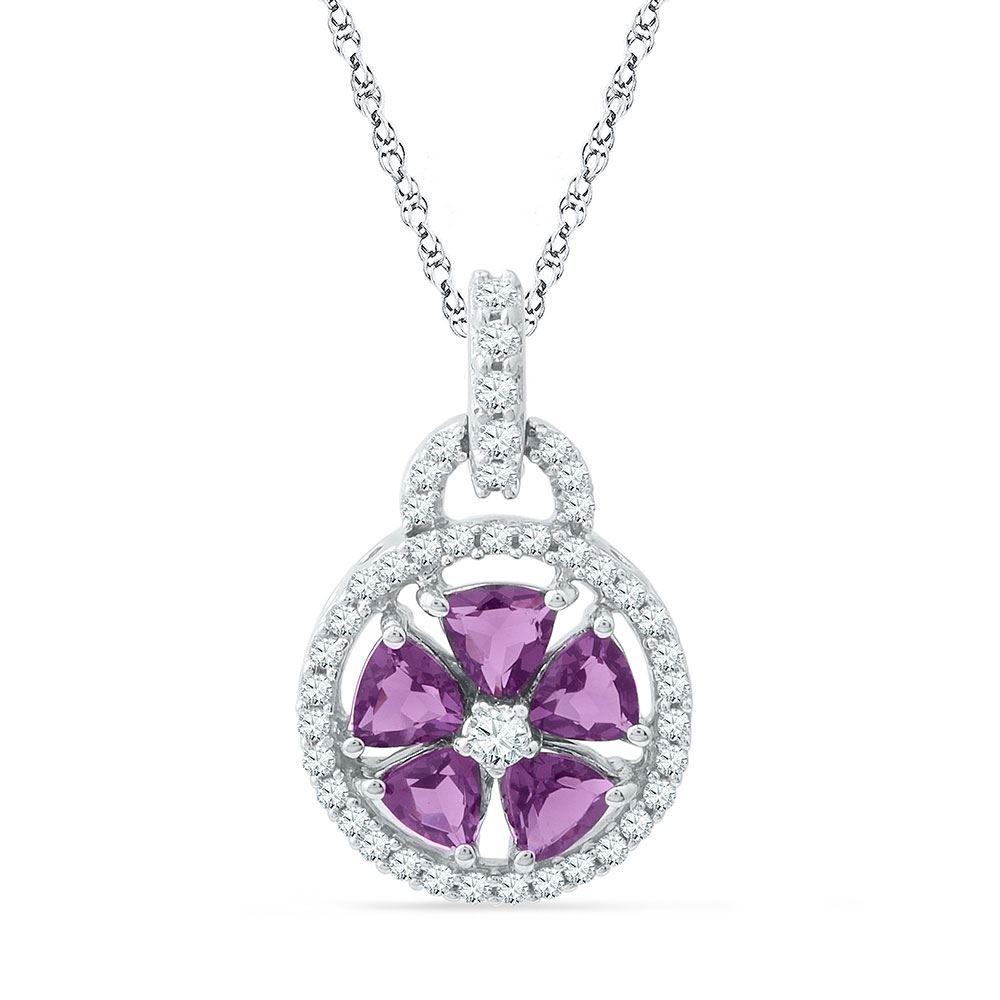 10kt White Gold Womens Lab-Created Amethyst Flower Circle Pendant 1-1/2 CttwItem Number: GND-100721Gemstone Details<span