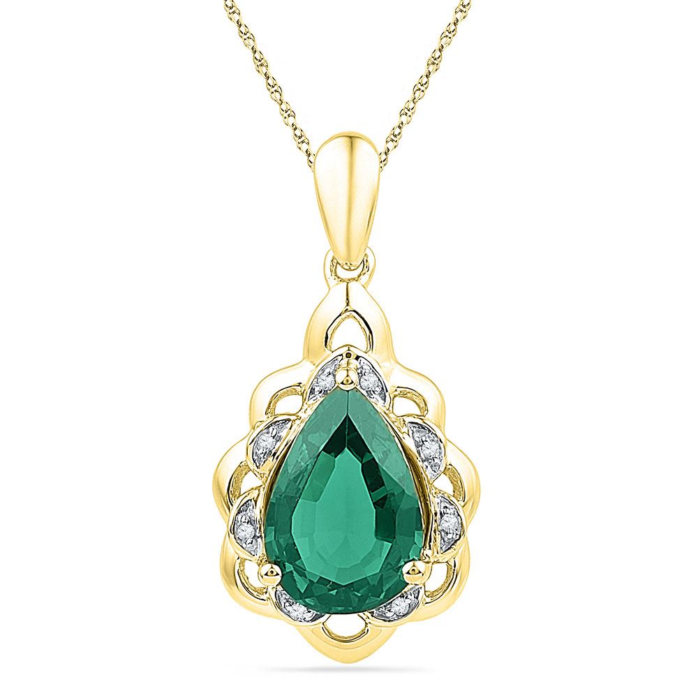 10kt Yellow Gold Womens Pear Lab-Created Emerald Solitaire Diamond Pendant 3-3/8 Cttw
