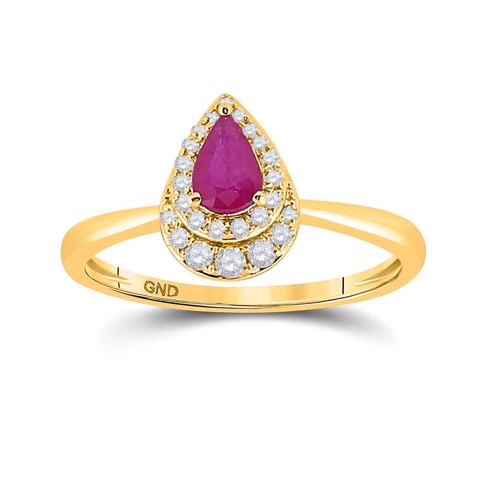 14kt Yellow Gold Womens Pear Ruby Diamond Halo Solitaire Ring 3/4 CttwItem Number: GND978709Gemstone Details3/4 Carats total weight --- 5/8 carat center solitaire