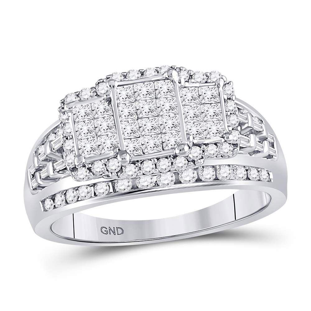10kt White Gold Womens Princess Diamond Triple Cluster Ring 1 Cttw