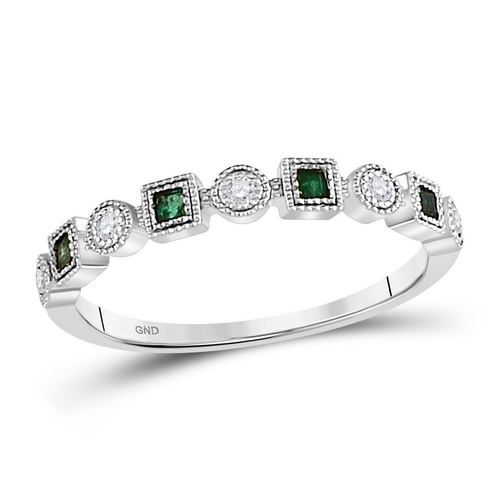 10kt White Gold Womens Princess Emerald Diamond Square Dot Stackable Band Ring 1/8 CttwItem Number: GND-127819Gemstone Details<span